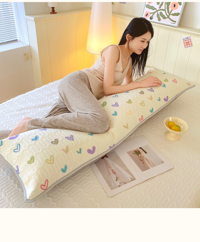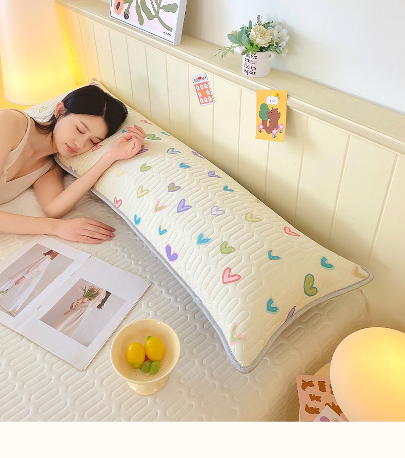 雨彤家纺 2025年新款A类乳胶凉感丝双人长枕套 梦幻爱心