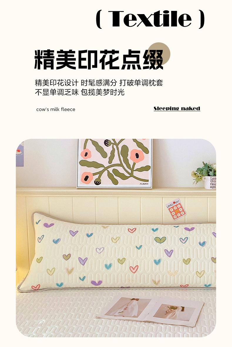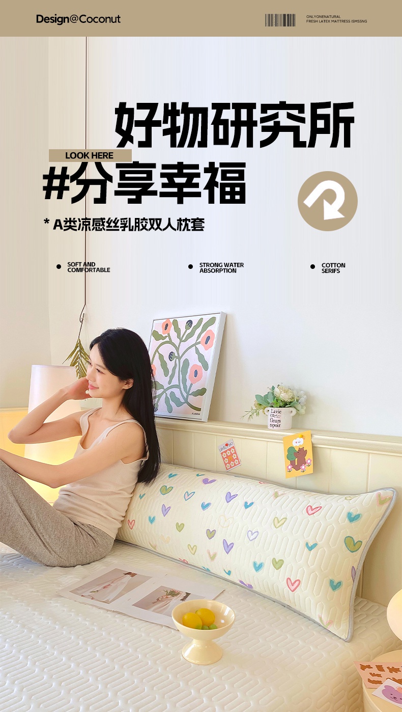 商品名称:雨彤家纺 2025年新款A类乳胶凉感丝双人长枕套 梦幻爱心