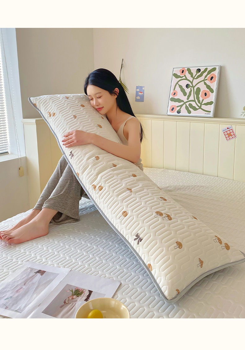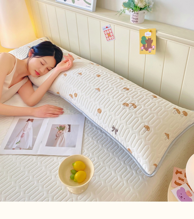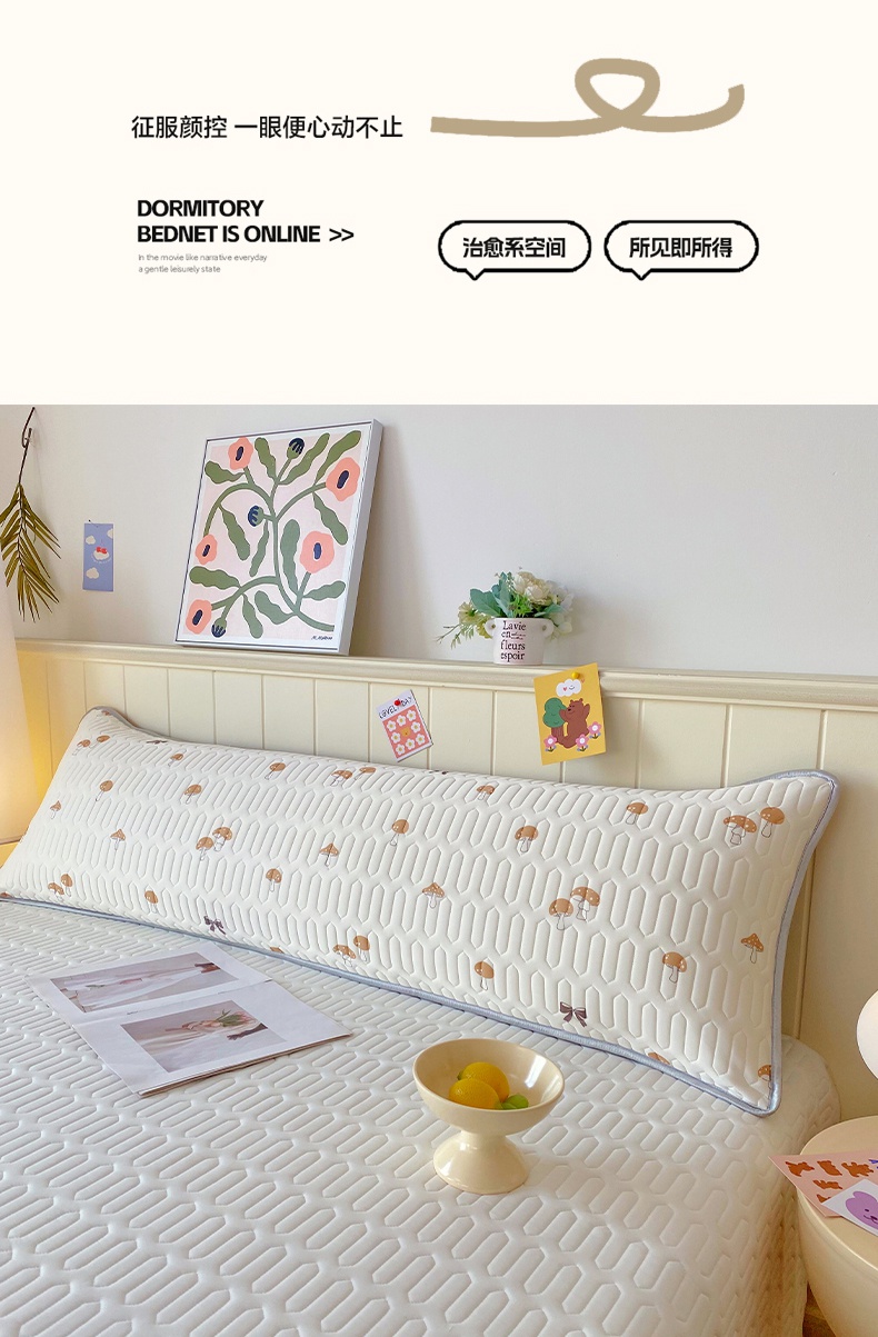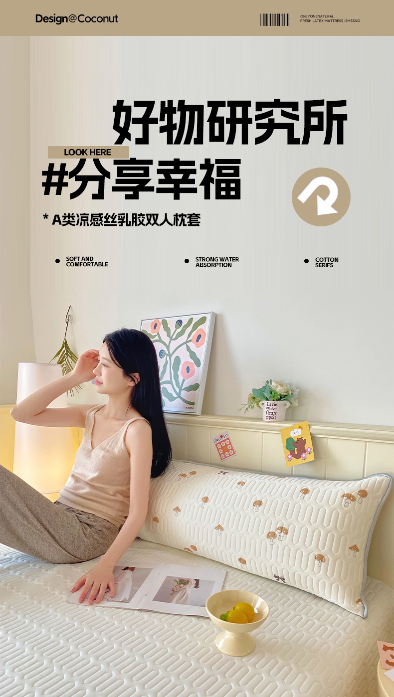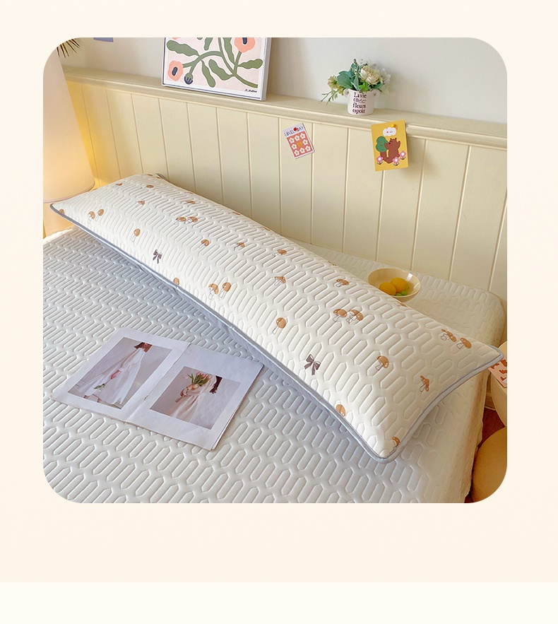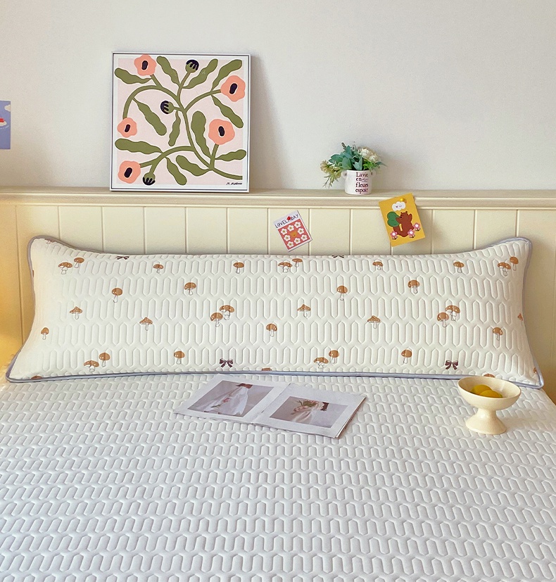 商品名称:雨彤家纺 2025年新款A类乳胶凉感丝双人长枕套 萌趣蘑菇-棕