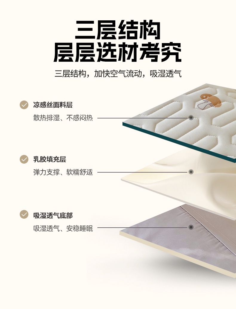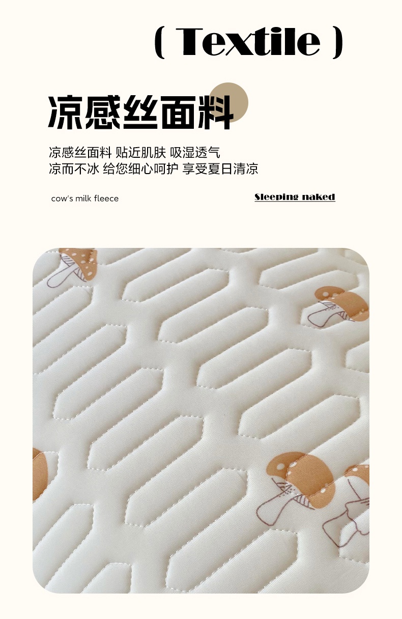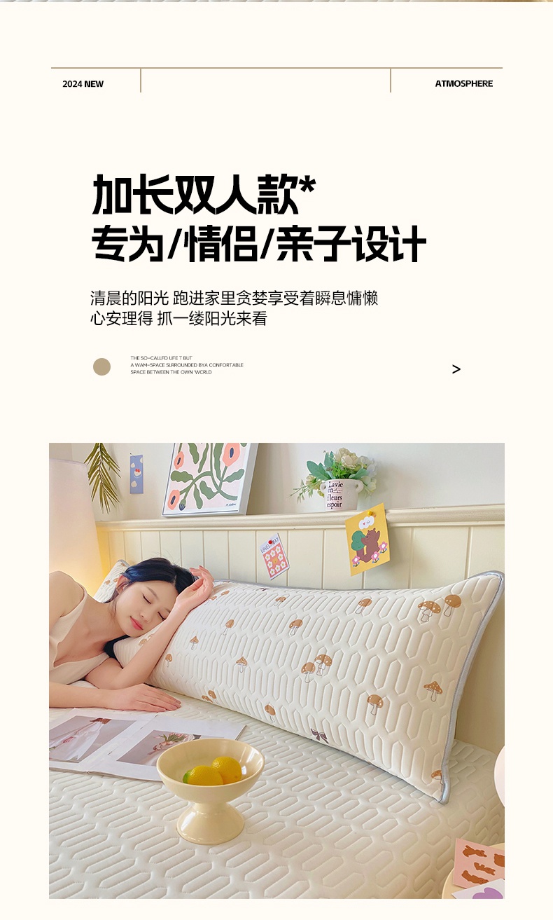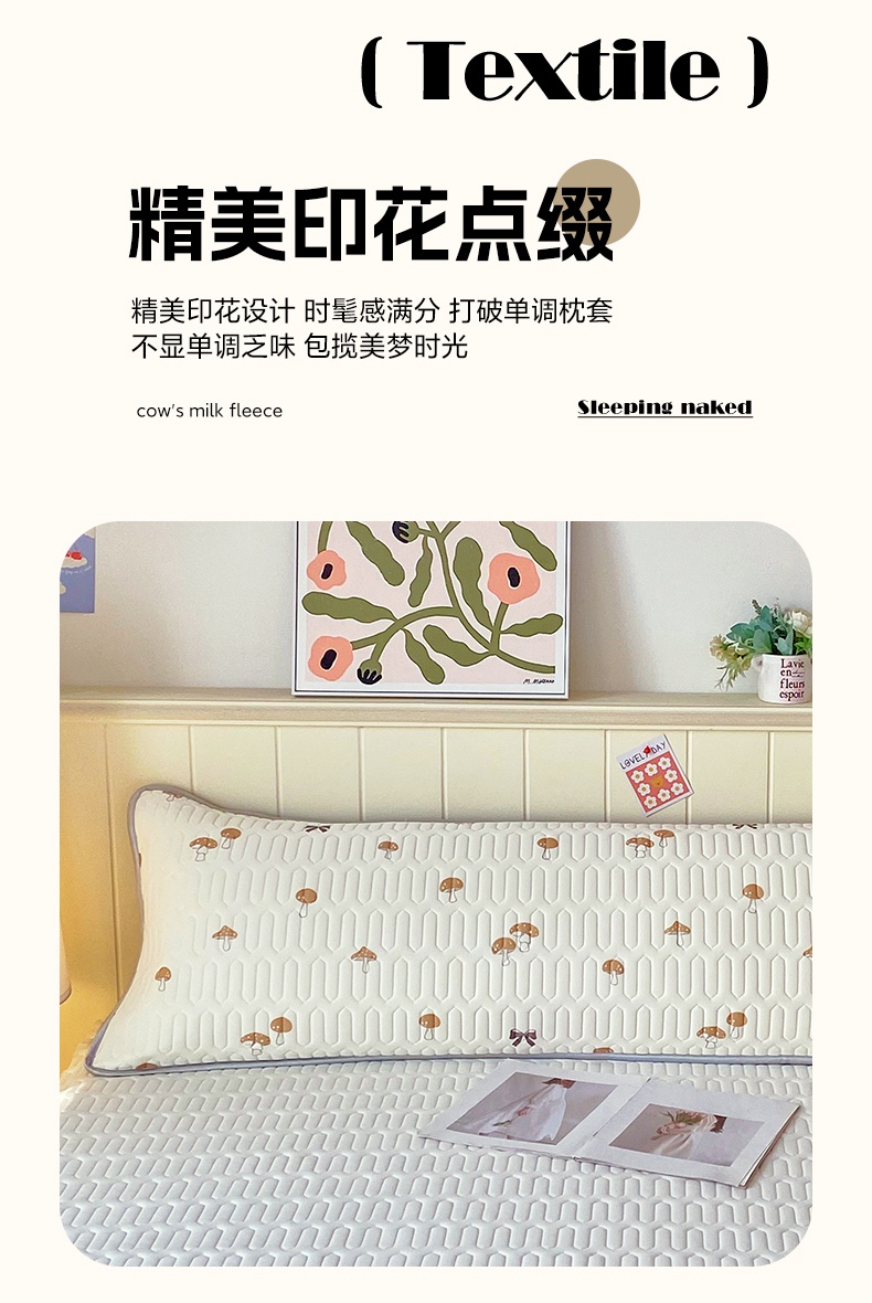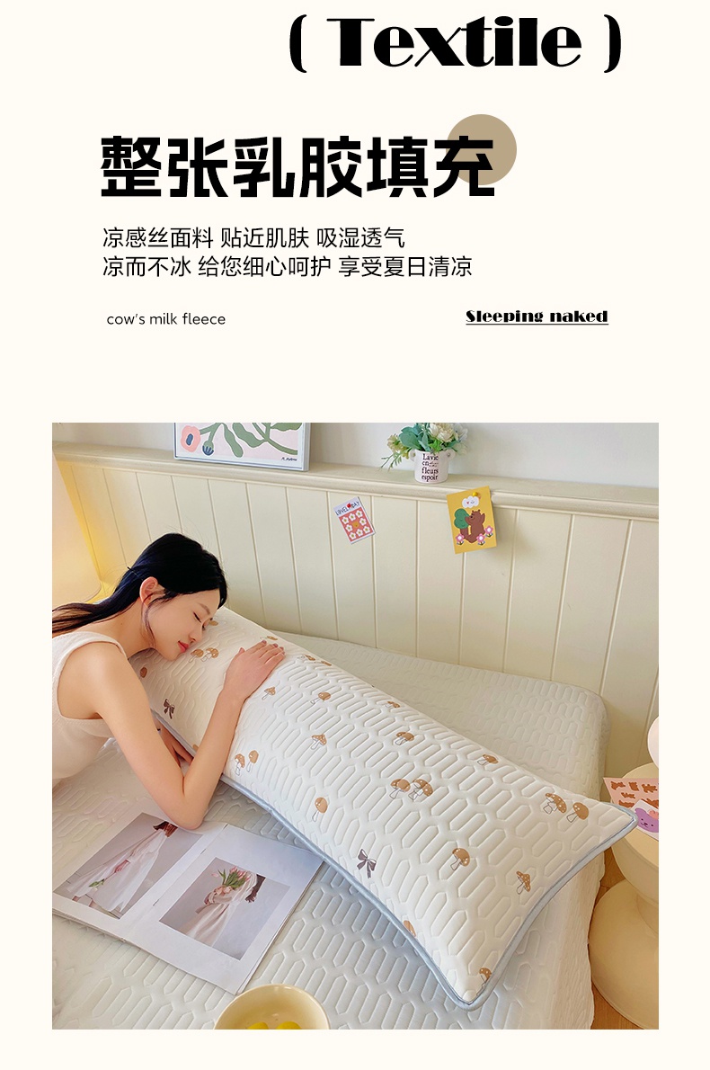 商品名称:雨彤家纺 2025年新款A类乳胶凉感丝双人长枕套 萌趣蘑菇-棕