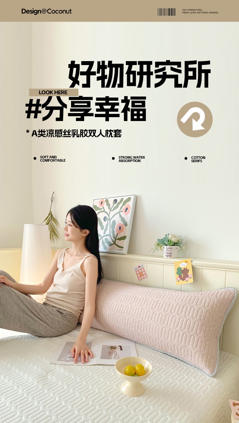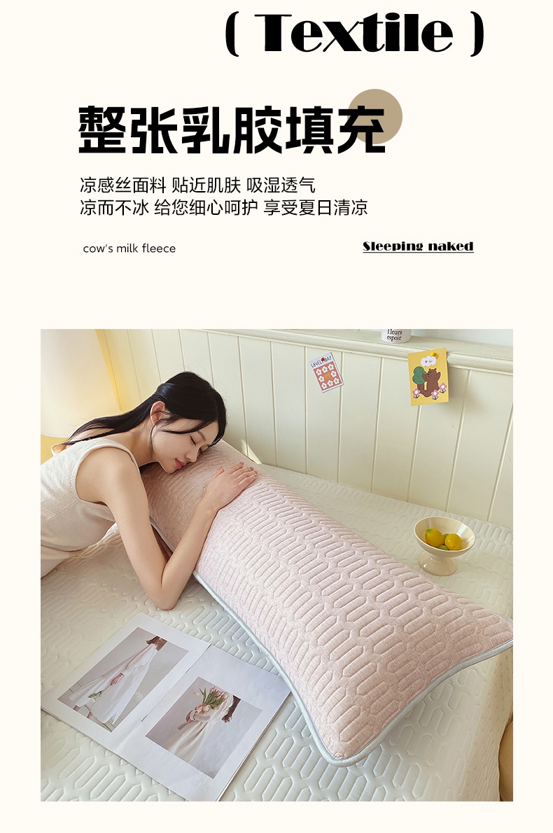 商品名称:雨彤家纺 2025年新款A类乳胶凉感丝双人长枕套 肌理纹-咖