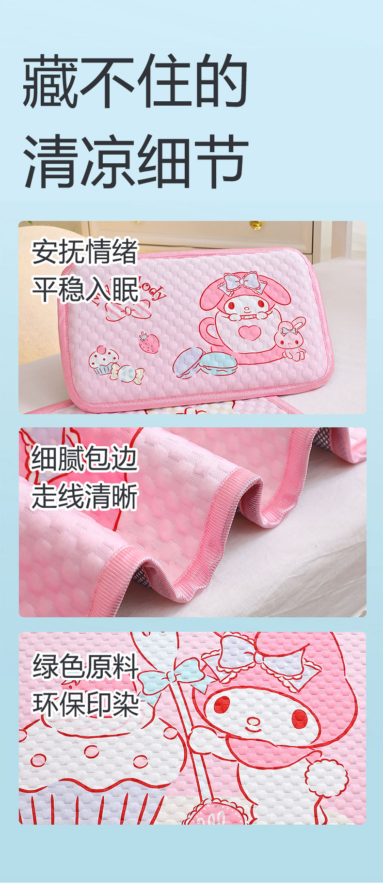 商品名称:2025新款3D凉豆豆大版三丽鸥正版授权儿童凉席夏被三件套 凉豆豆 KT