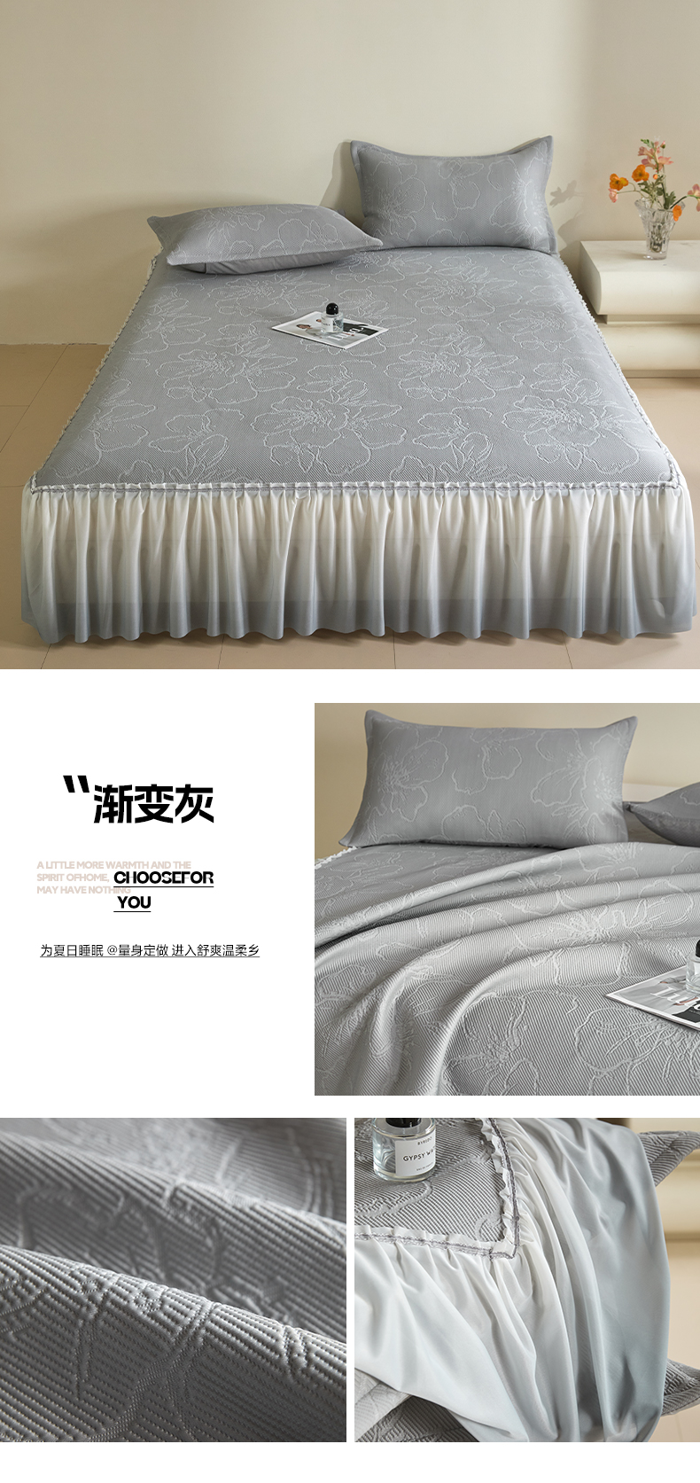 商品名称:卡初家居(原微来) 2025新款乙纶冰豆豆渐变色床裙款凉席席子 渐变灰