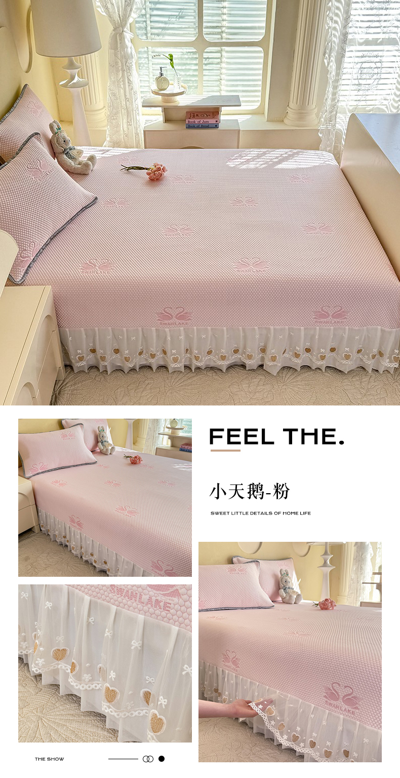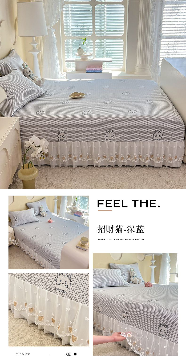 (总)美达家纺 2025新款全棉纯棉AB版蕾丝小花边单层床裙四件套,解语花,南湘,沁雨花叶,悦棠