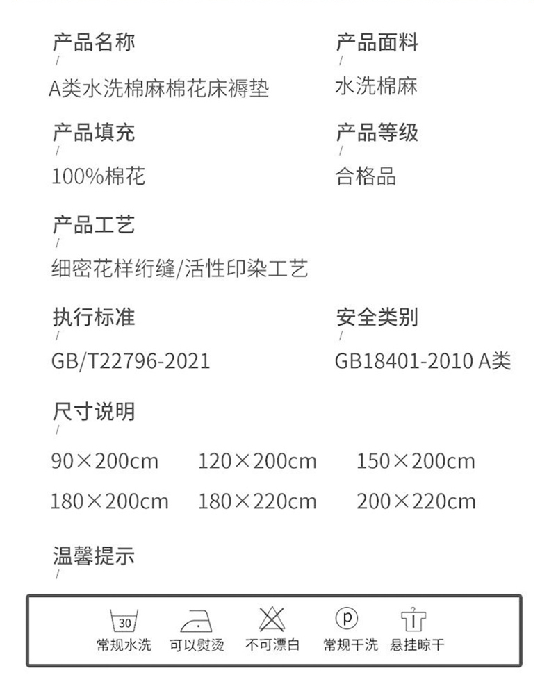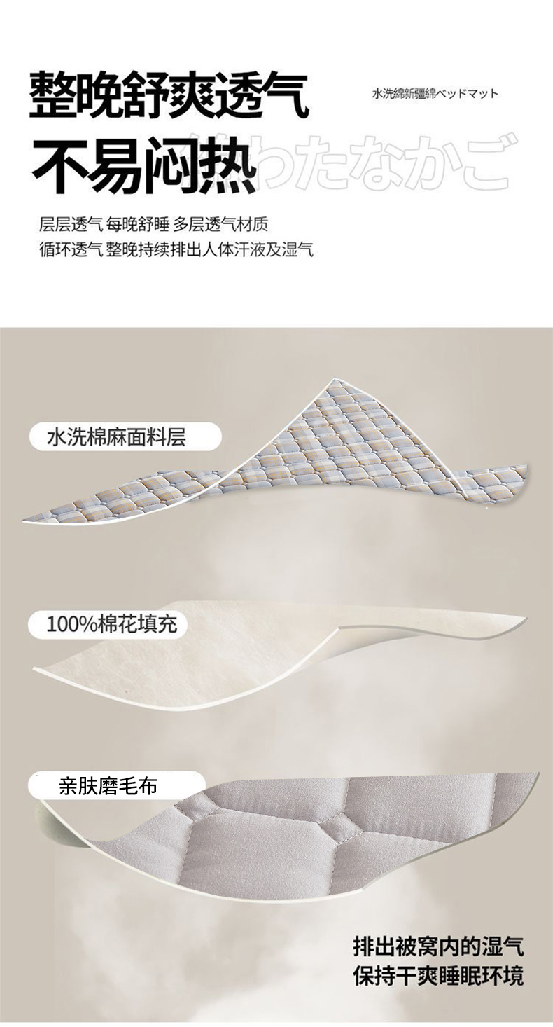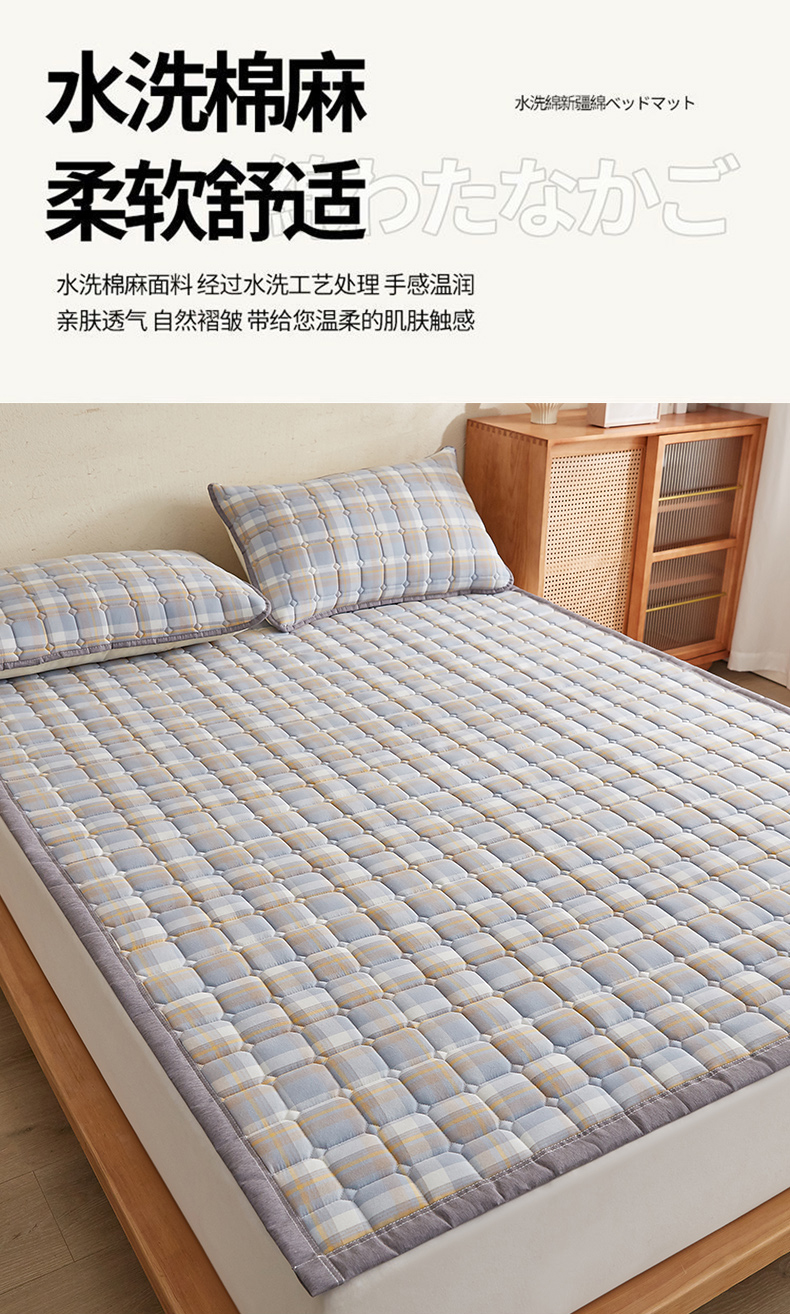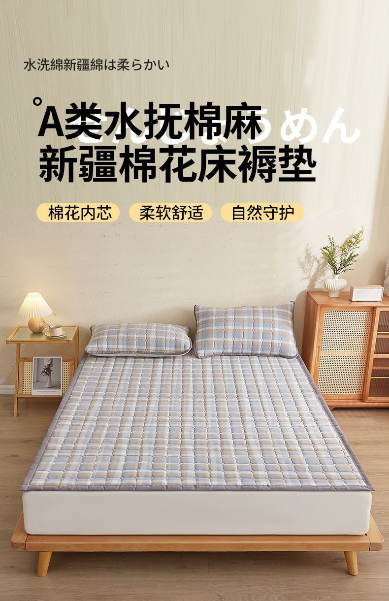当前位置: 91家纺网 > 商品网购 > 床垫/床褥 > 普通床垫 > 暖季家纺 2025新款A类水抚棉麻新疆棉花床护垫 絮叠床护垫-简兮蓝