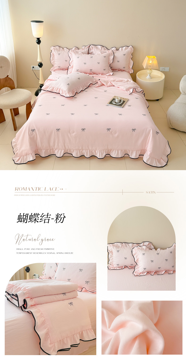 商品名称:米可 2025新款A类刺绣云朵棉夏被四件套 樱桃-粉