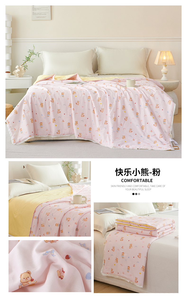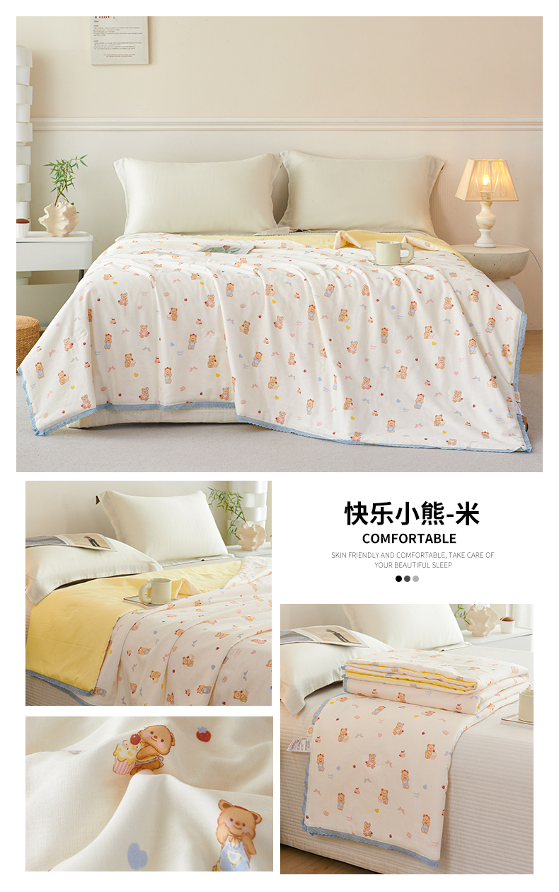 (总)瑞米家居 2025新款A类全棉双层纱印花夏被,翱吉-咖,豹蝶纹-咖,草莓之恋-米,蝶花蕊-咖,蝶梦-咖,花晨-咖,花晨-兰,花样-兰,花样-绿,花遇-咖,快乐小熊-粉,快乐小熊-米,觅恋-紫,小兔南瓜-桔,伊然-咖,伊然-绿