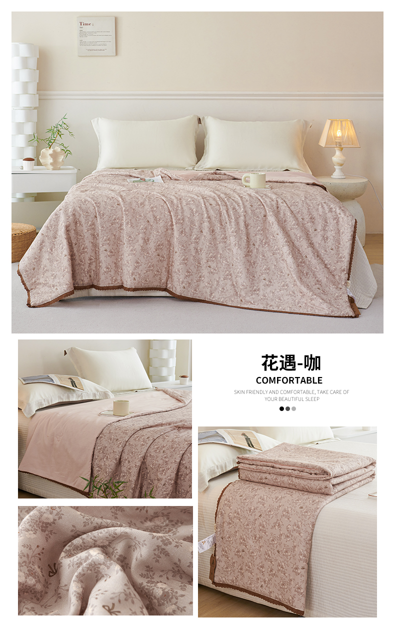 瑞米家居 2025新款A类全棉双层纱印花夏被 花遇-咖