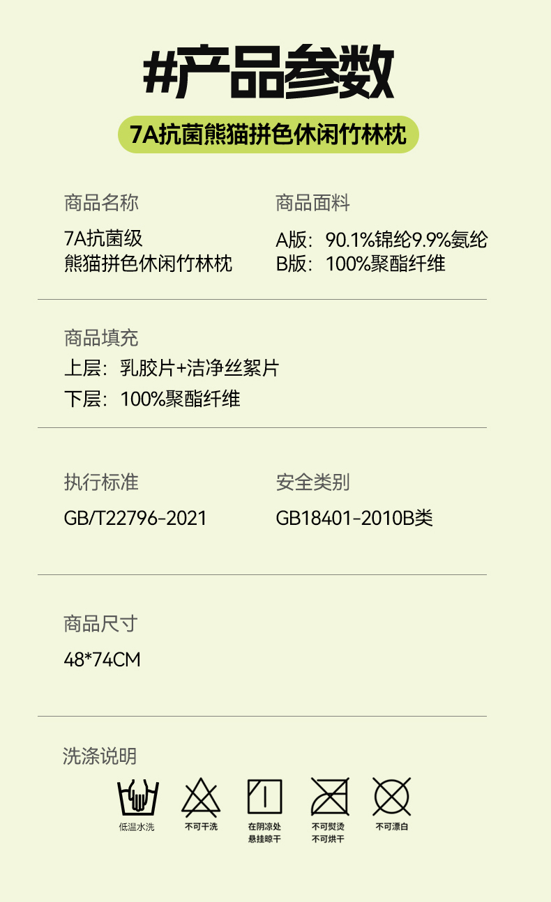 当前位置: 91家纺网 > 商品网购 > 枕头/枕芯/保健枕/颈椎枕 > 普通枕芯 > (总)麦肯锡 2025新款7A抗菌熊猫拼色休闲竹林枕头枕芯