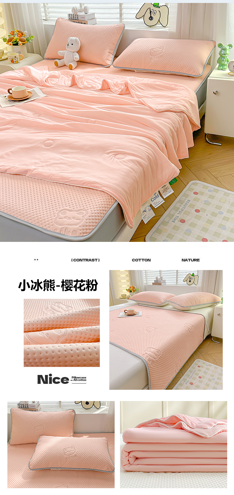 当前位置: 91家纺网 > 商品网购 > 床品套件 > 四件套 > 夏被四件套 > 慕木家纺 2025新款小冰熊凉感冰丝凉席夏被四件套 凉席款 樱花粉