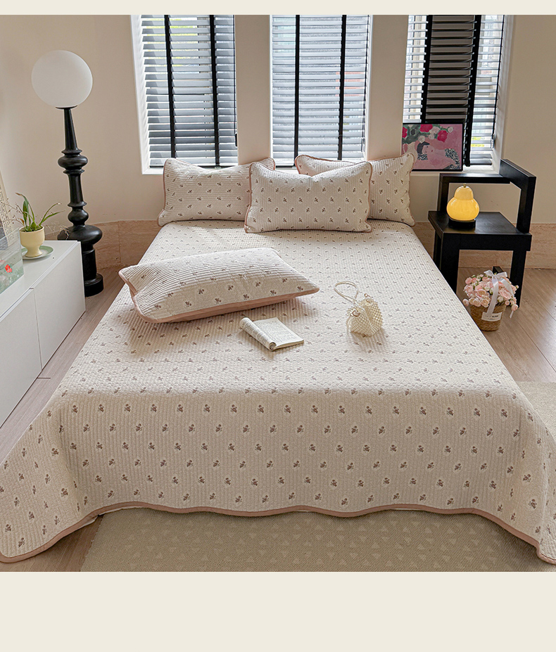 茉夕家纺 2025新款里外全棉夹棉床盖系列 花芒咖