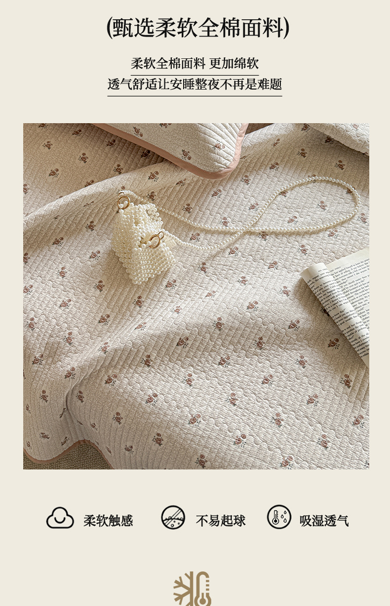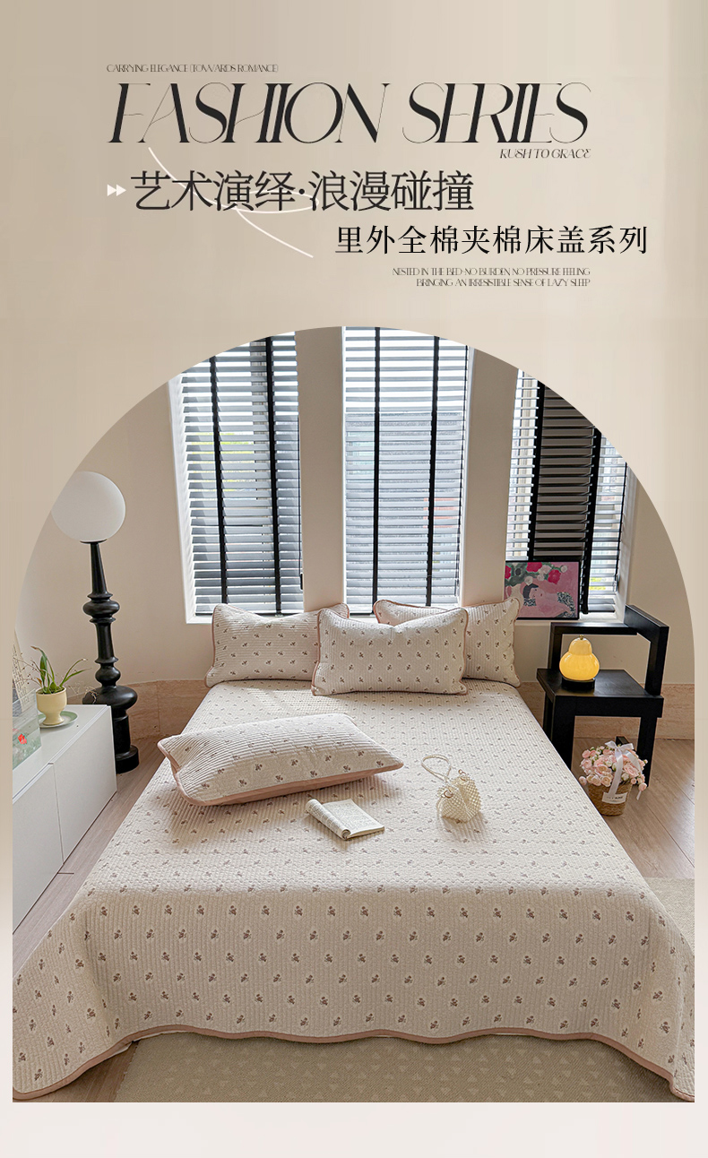 • 91家纺网 家纺一手货源 找家纺 茉夕家纺 茉夕家纺 2025新款里外全棉夹棉床盖系列 花芒咖