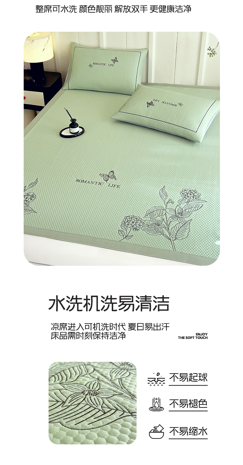 宜家坊 2025新款A类PE中分子绣花软凉席-墨蝶 床席款-墨蝶绿