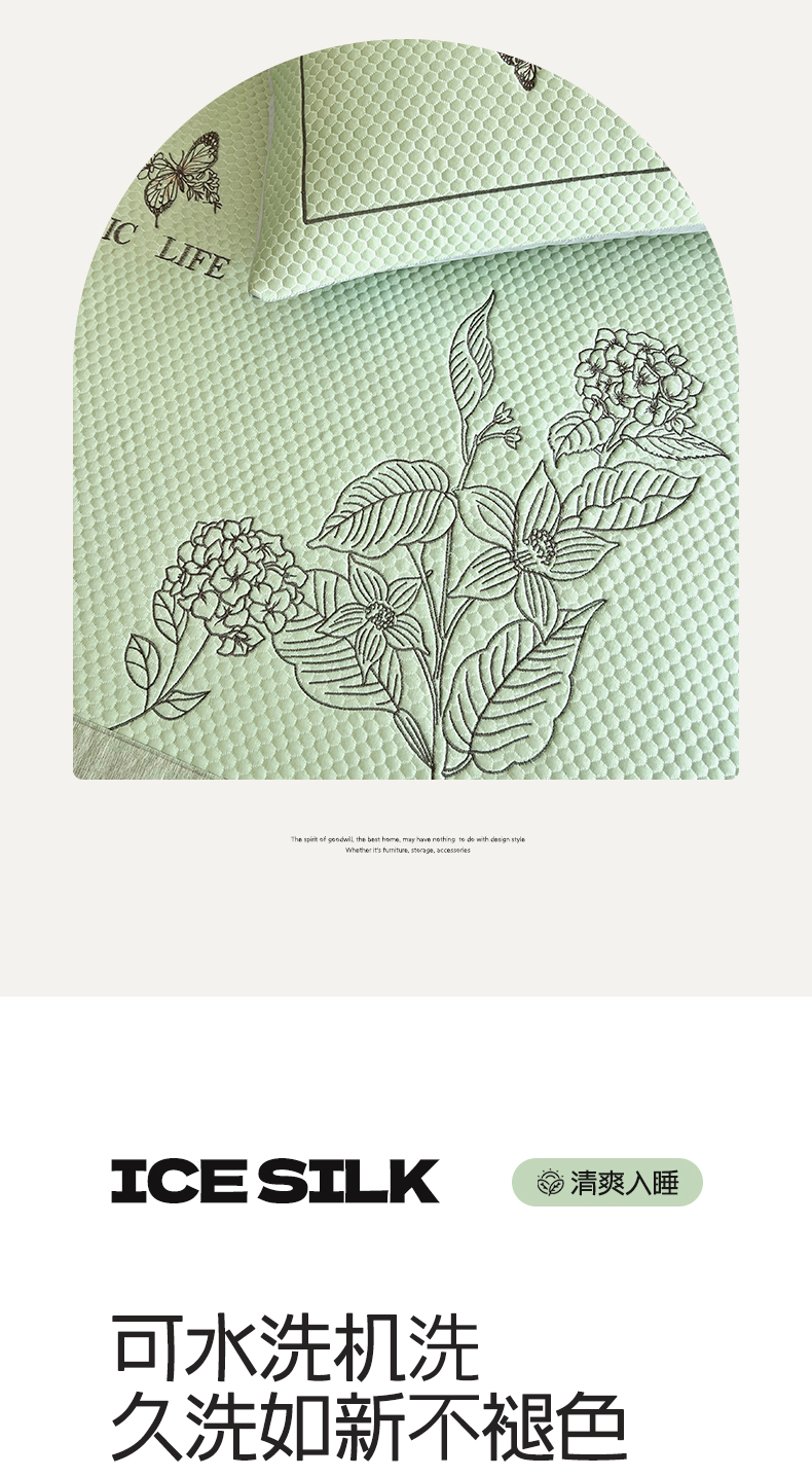 商品名称:宜家坊 2025新款A类PE中分子绣花软凉席-墨蝶 床席款-墨蝶绿