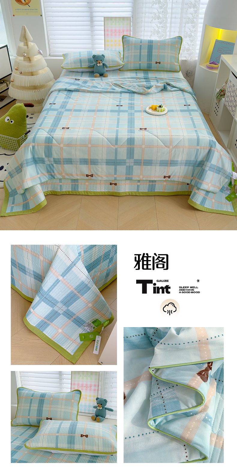 (总)赫梵茜 2025新款经典小格纹云朵棉格子款学生床盖单品床盖床盖单件三件套,组合图仅做展示,绿格,粉格,青绿,黄格,黑格,蓝格,紫格
