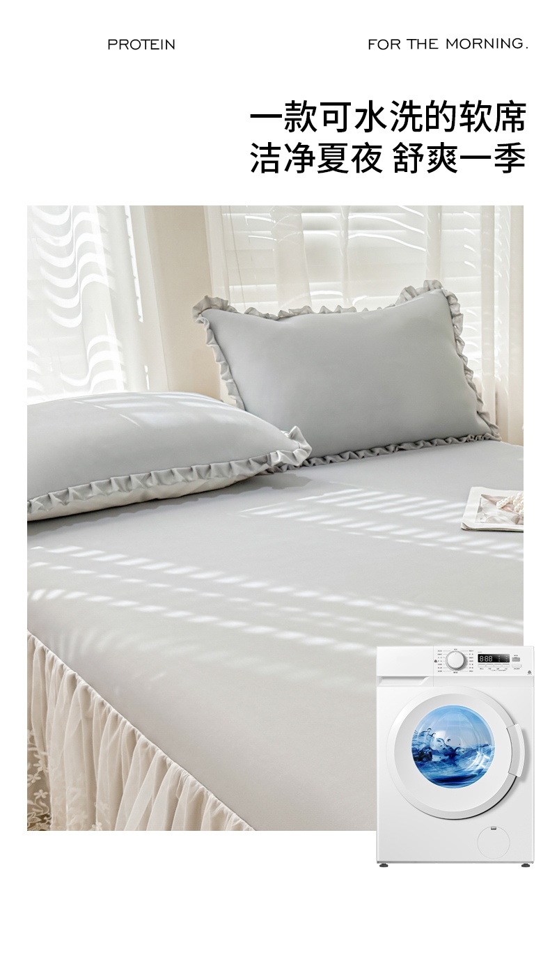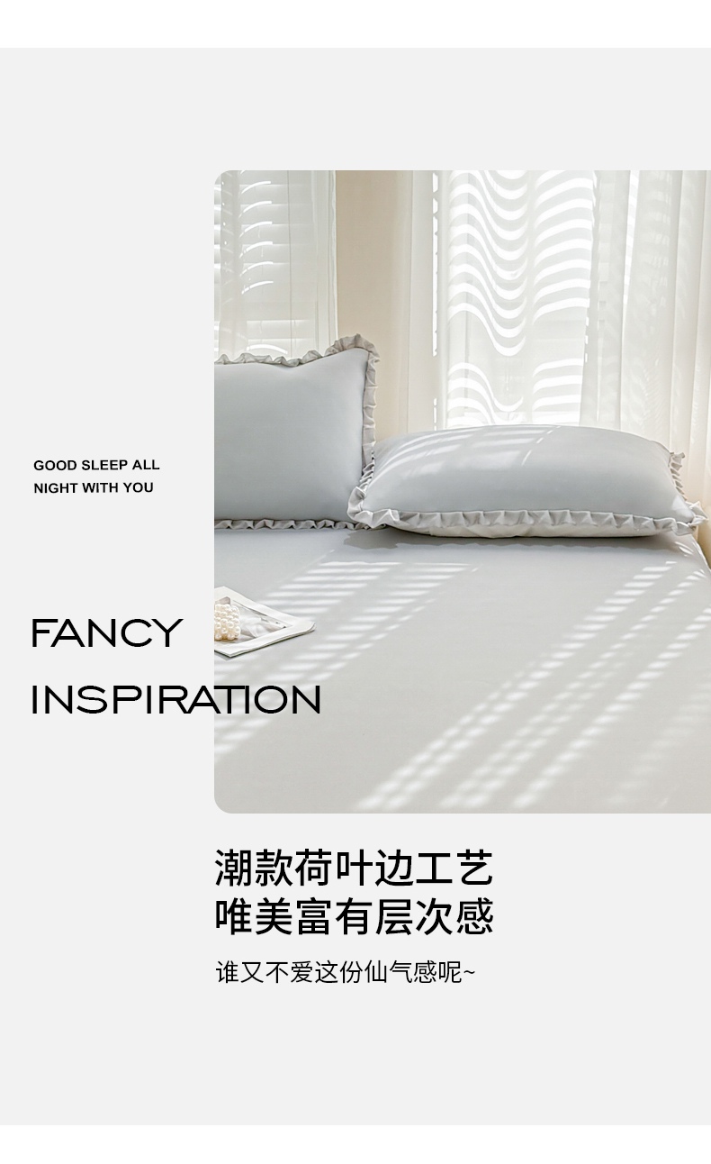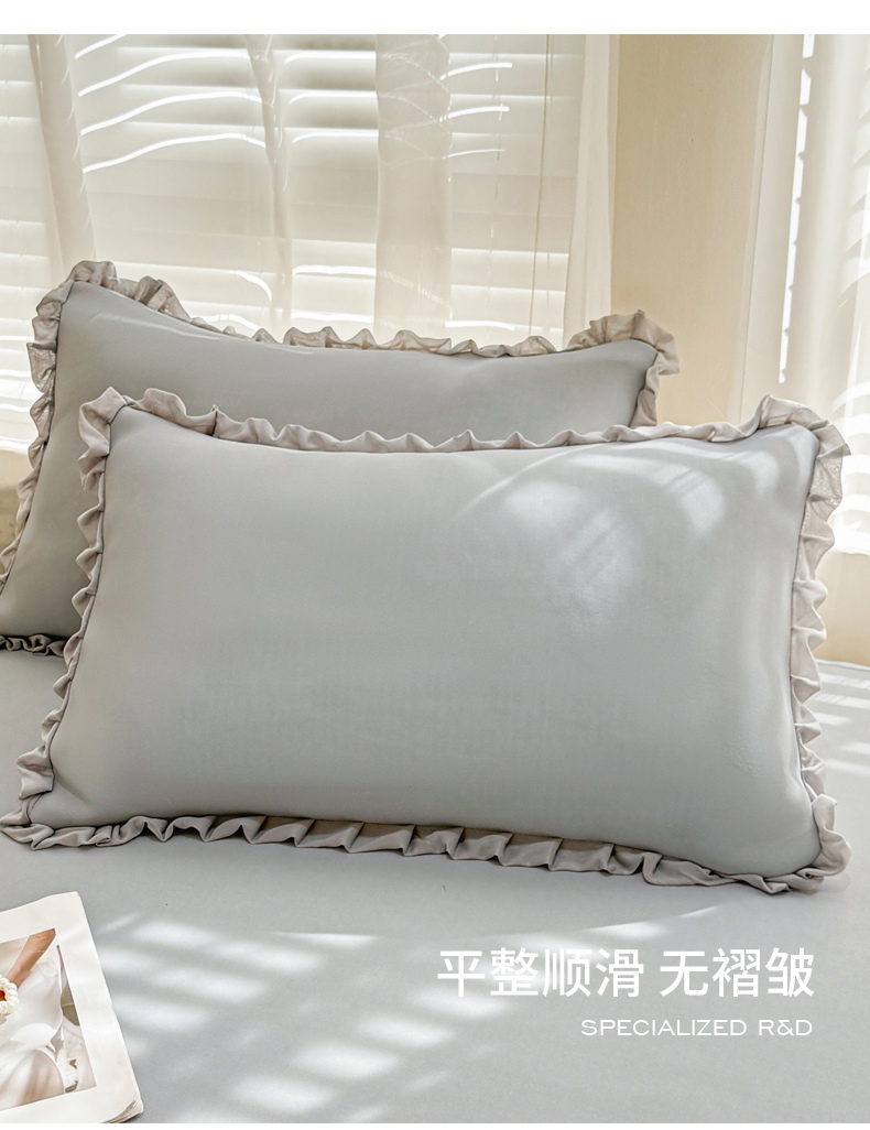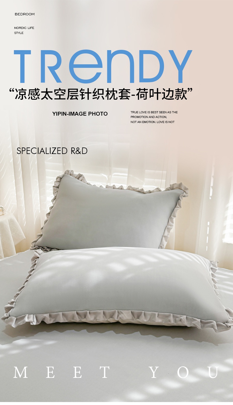 商品名称:LIFE.丽芙 2025春夏新款独家研发太空层凉感冰丝双层荷叶边枕头套 浅灰
