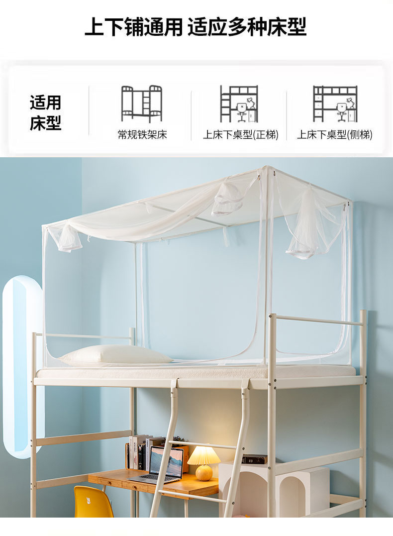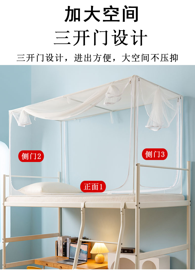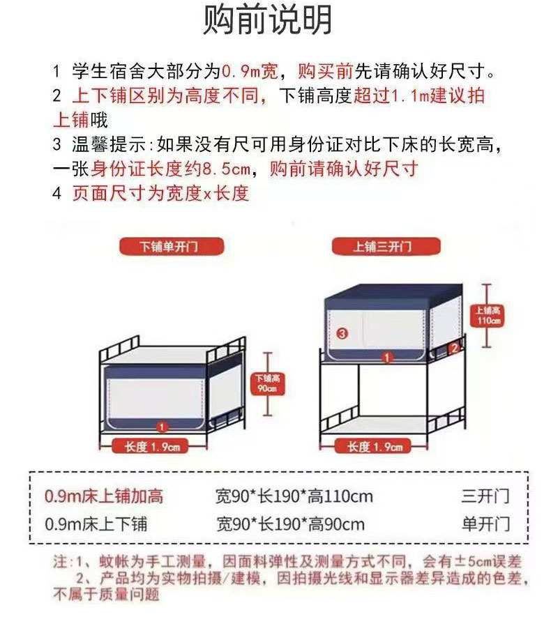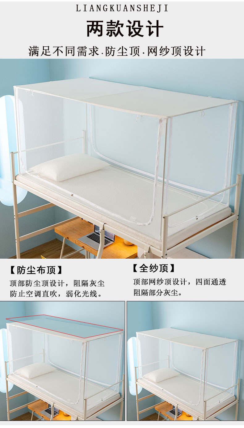 (总)宜品雅 2025新款学生款宿舍遮光蚊帐,藏蓝色,淡雅灰,米色,深空灰,天空蓝,樱花粉