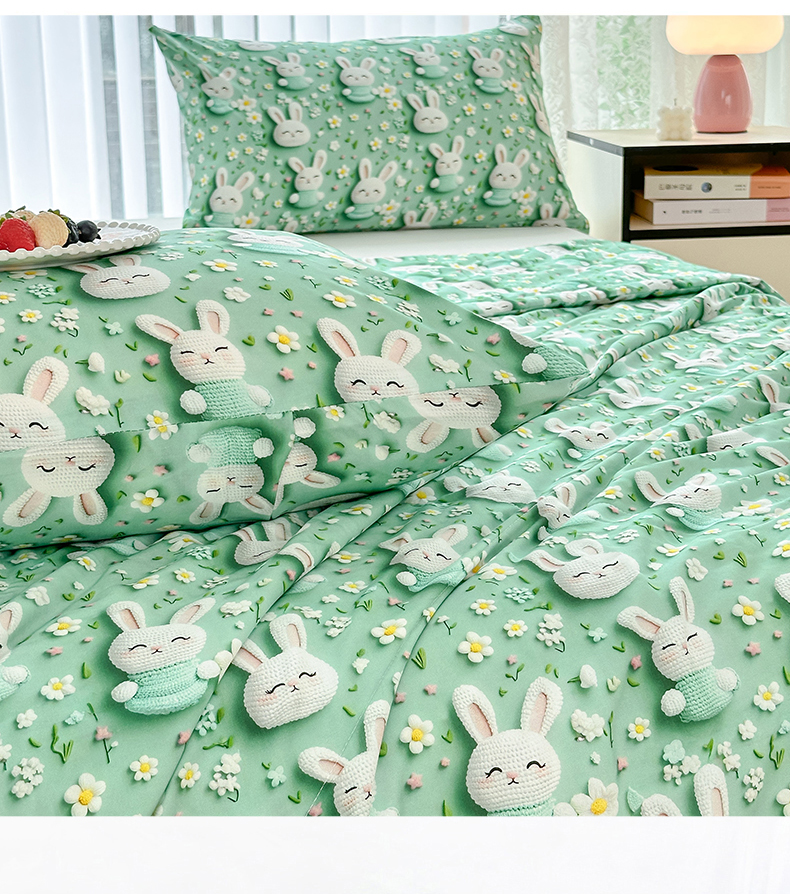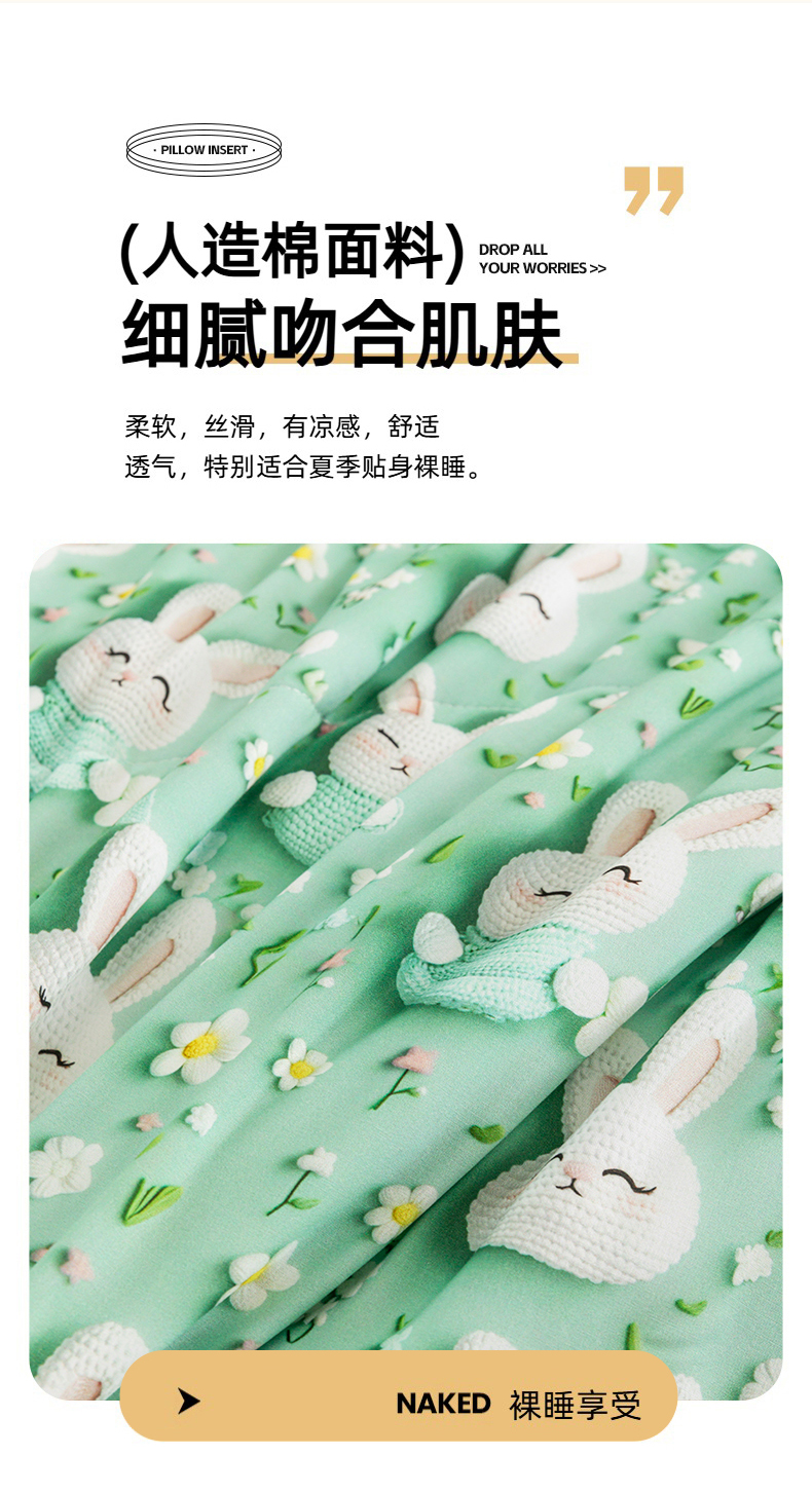 商品名称:天瑜家纺 2025新款5D印花棉绸卡通夏被 5D桔色小熊