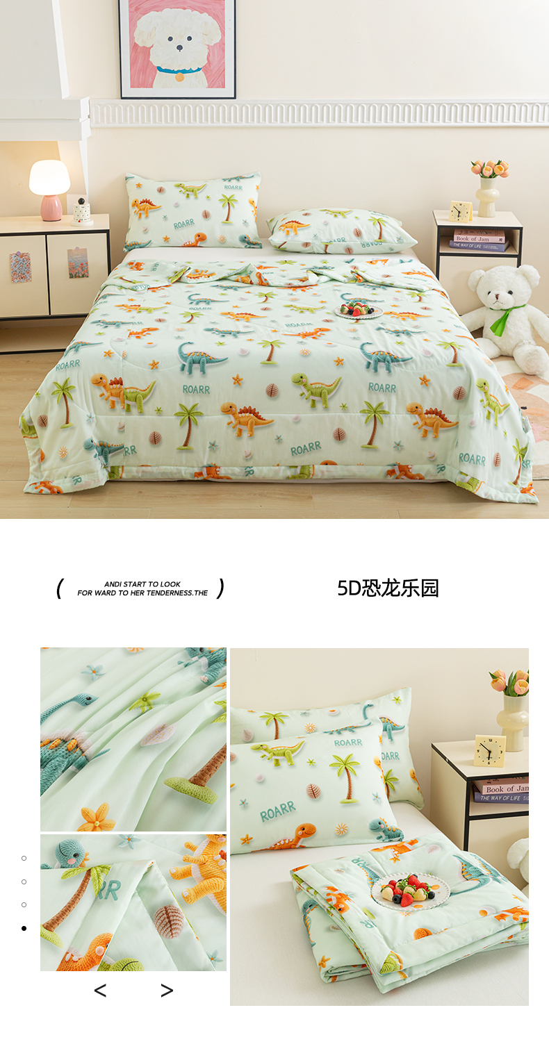 天瑜家纺 2025新款5D印花棉绸卡通夏被 5D桔色小熊