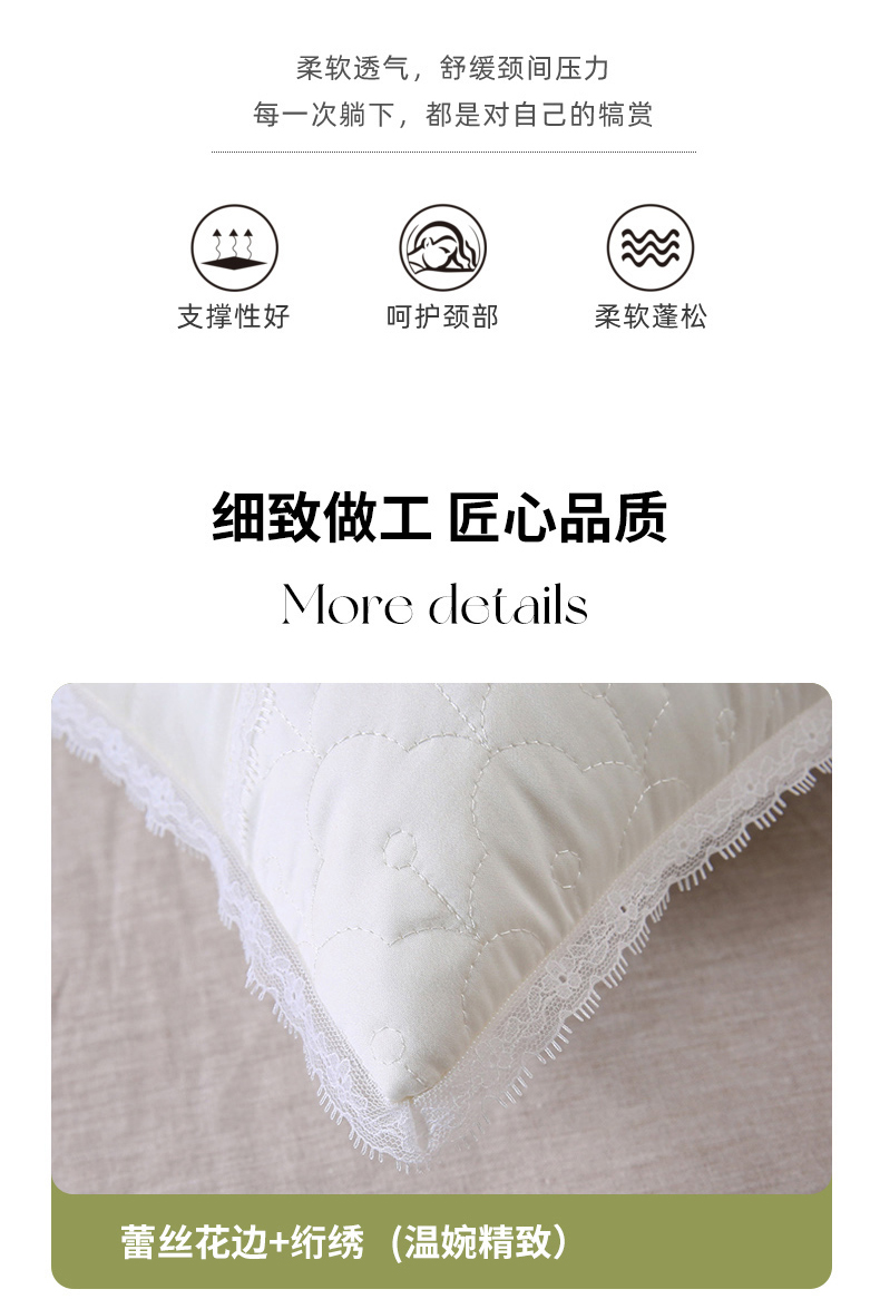 当前位置: 91家纺网 > 商品网购 > 枕头/枕芯/保健枕/颈椎枕 > 天意美枕芯 2025新款薰衣草花边养身枕枕头枕芯 薰衣草花边养身枕-皎洁白 48*74cm/只