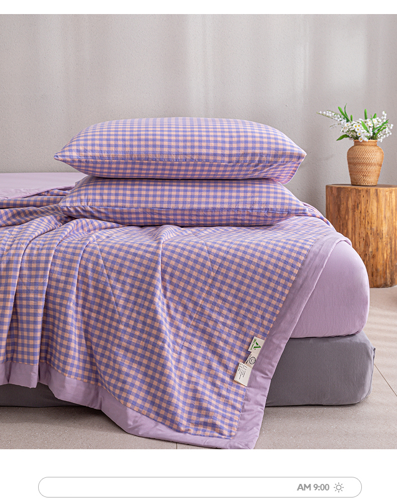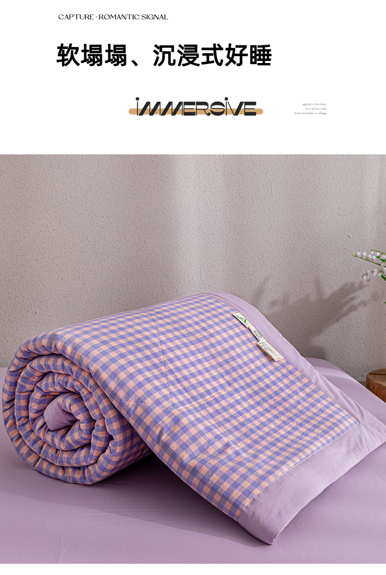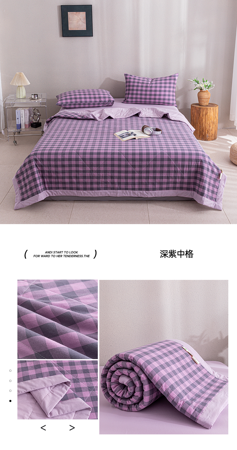 天瑜家纺 2025新款色织全棉水洗棉棉花夏被 粉紫小格