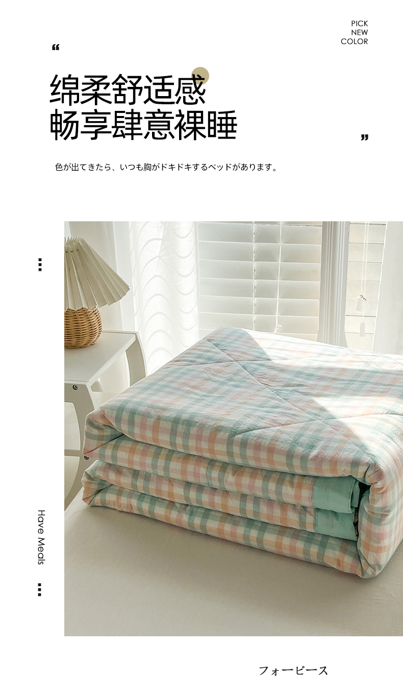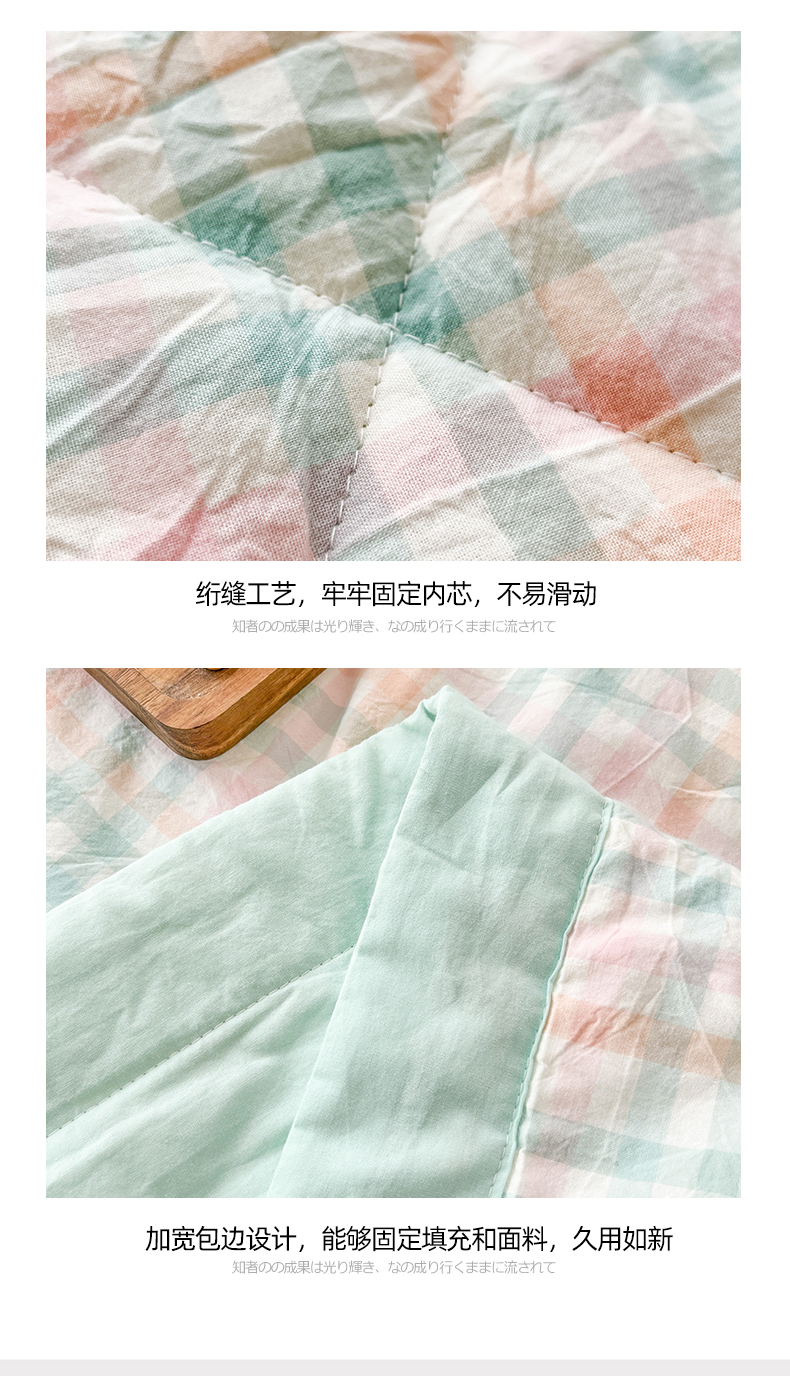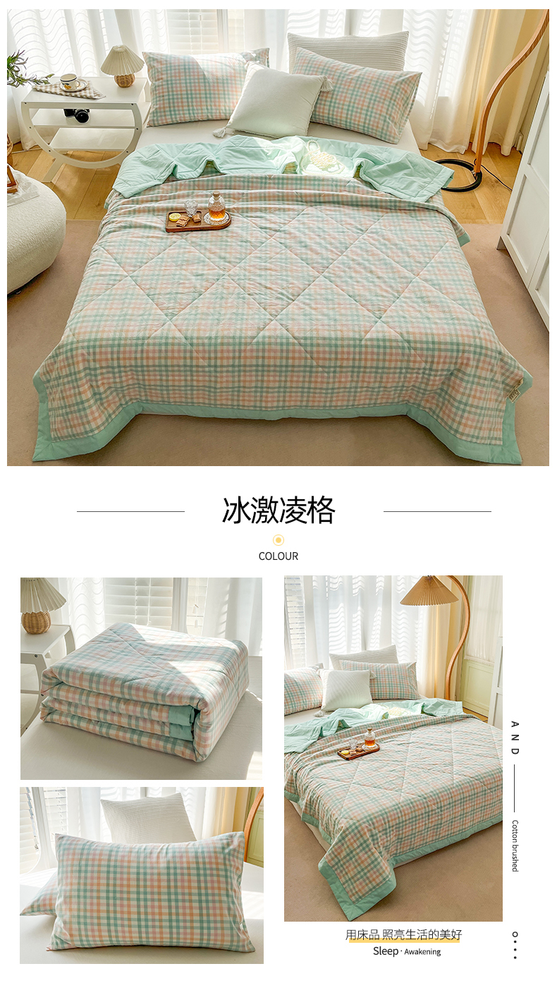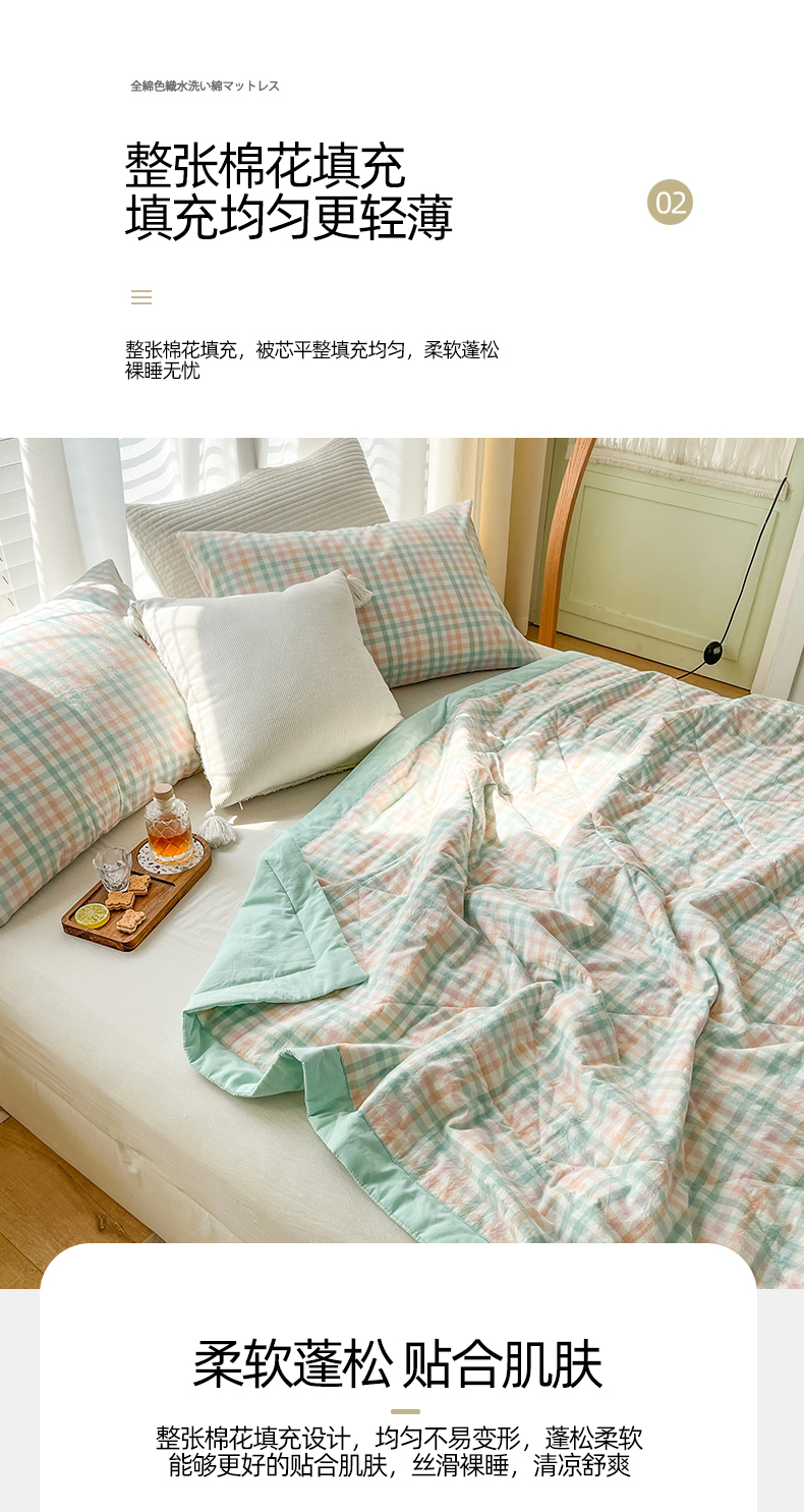 天瑜家纺 2025新款色织全棉水洗棉棉花夏被 冰激凌格