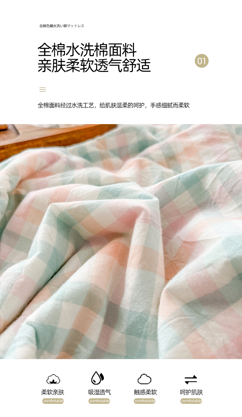 商品名称:天瑜家纺 2025新款色织全棉水洗棉棉花夏被 冰激凌格