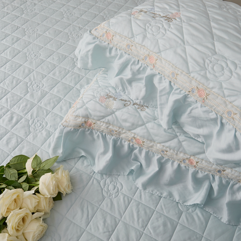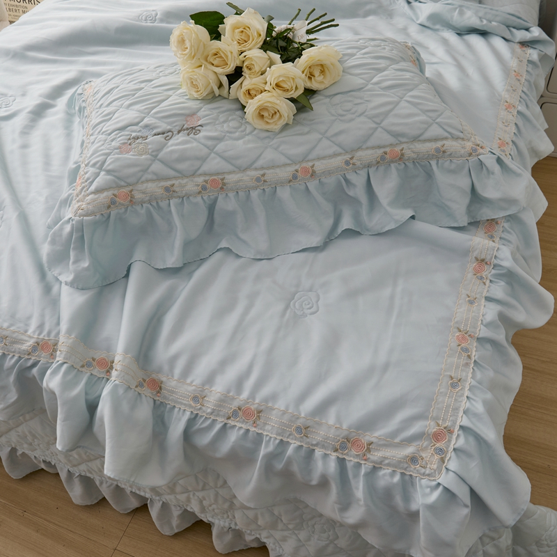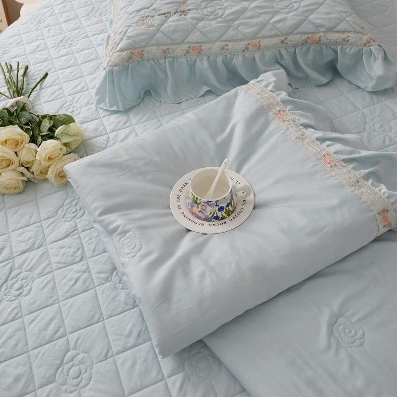 商品名称:2025新款50莱赛尔双面天丝床盖三件套 山茶花蓝