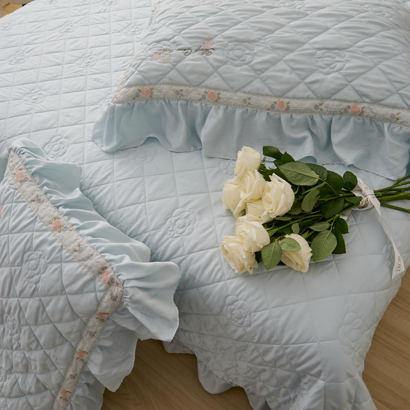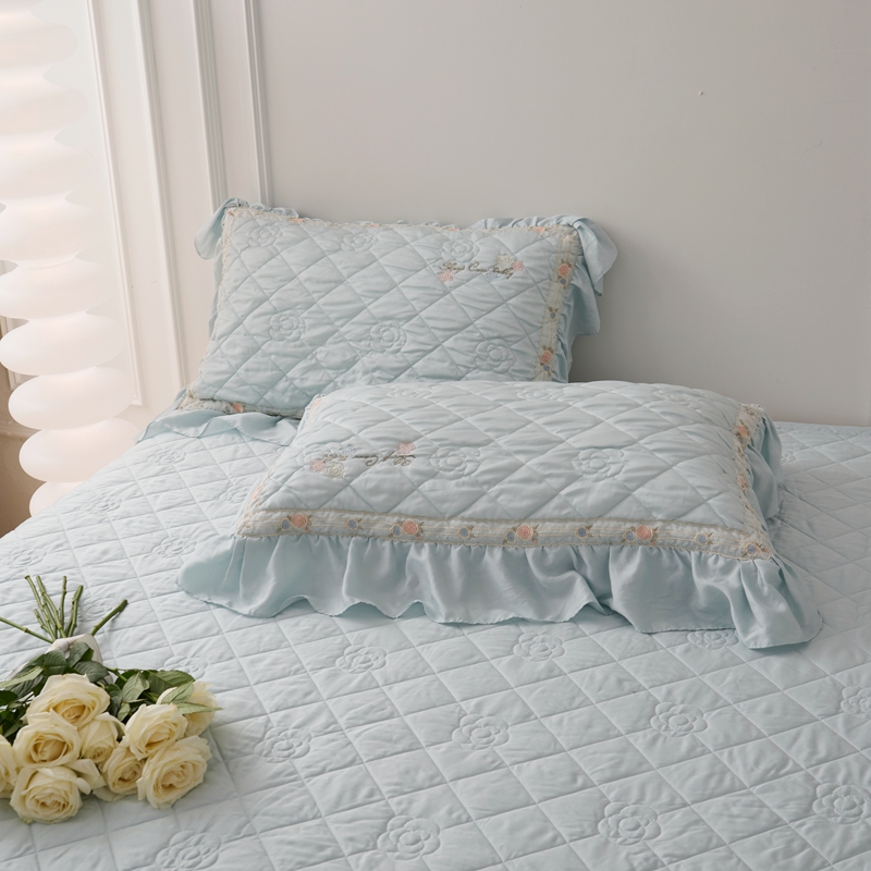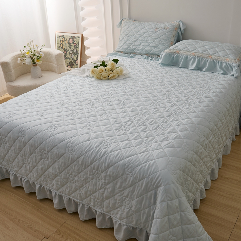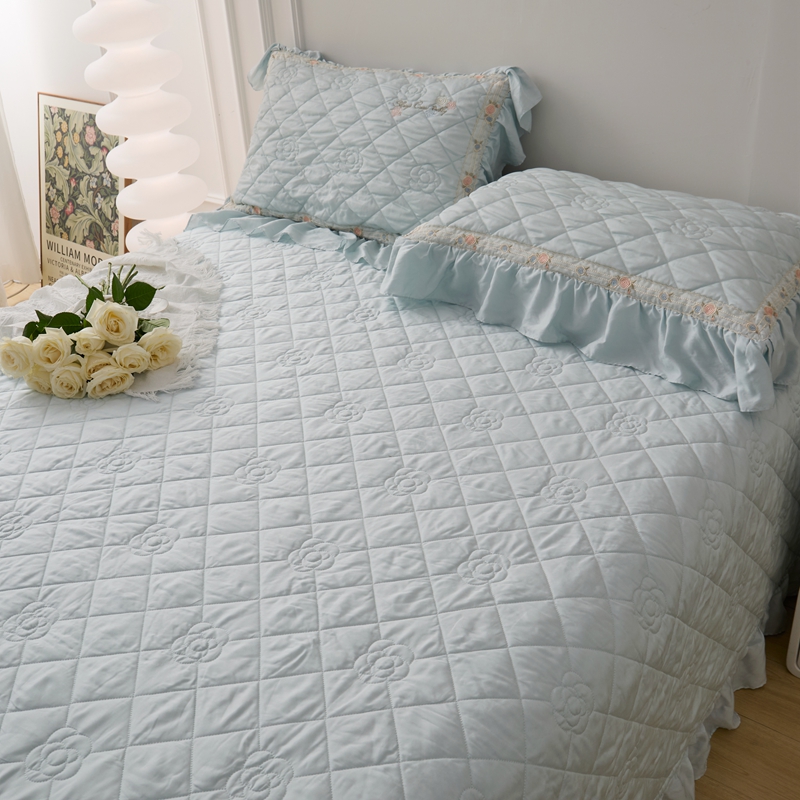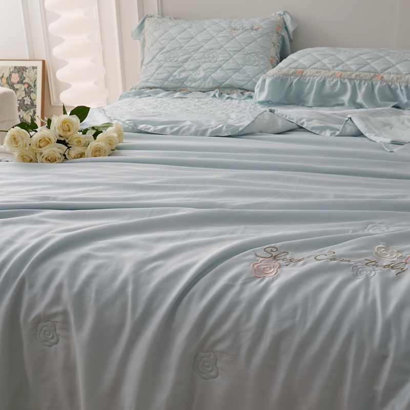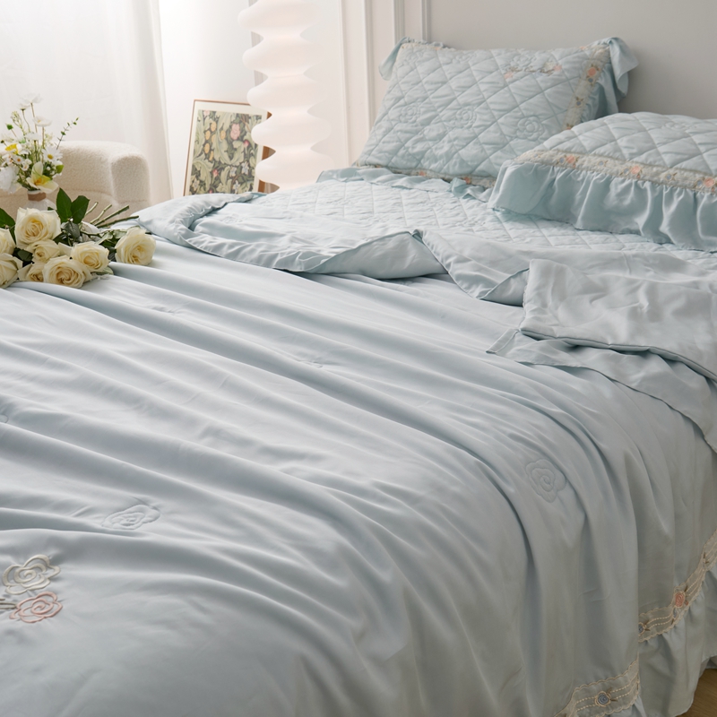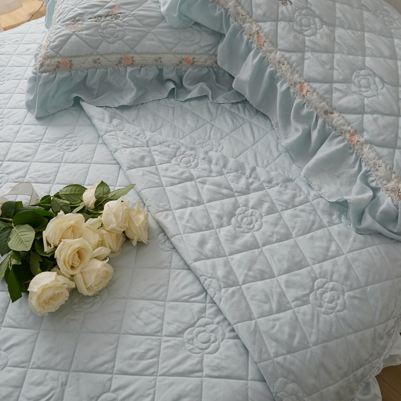2025新款50莱赛尔双面天丝床盖三件套 山茶花蓝