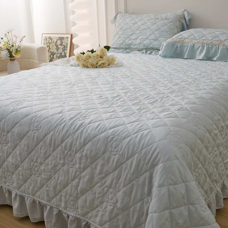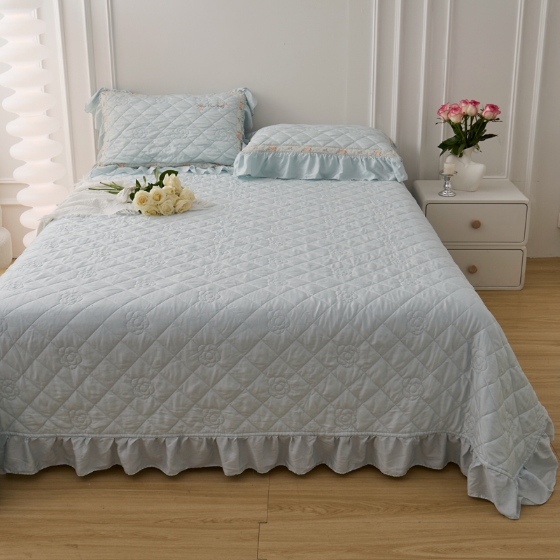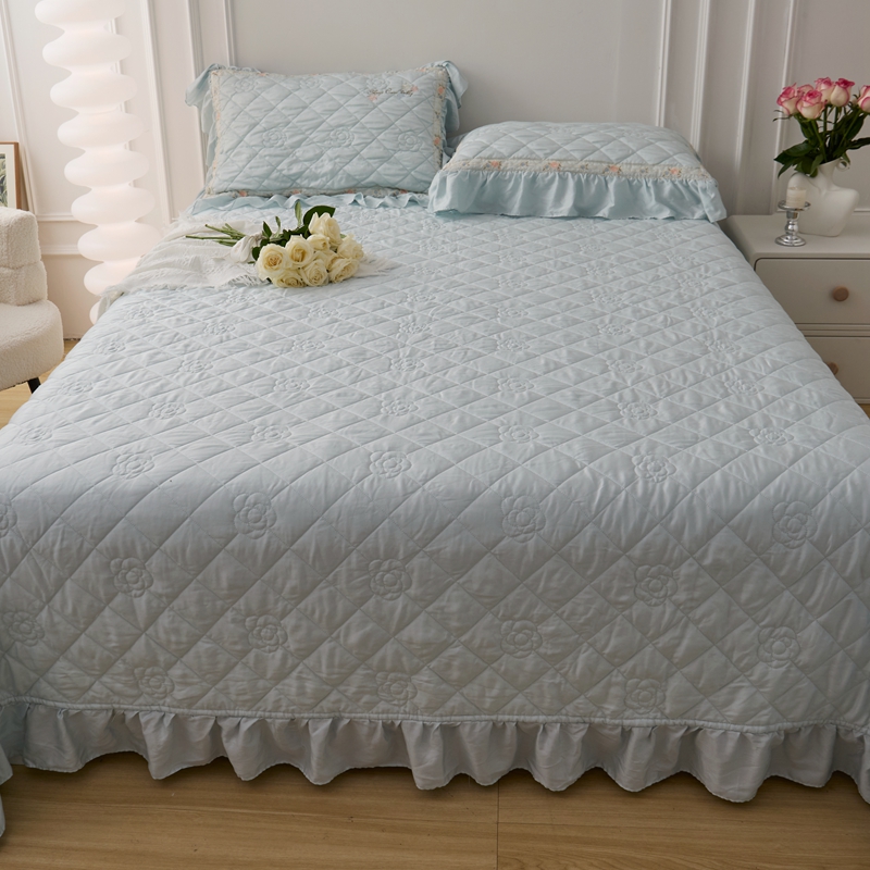 (总)上喜 2025新款全棉砂洗床盖新升级第五代,白色,湖蓝,奶油米,深灰,深咖