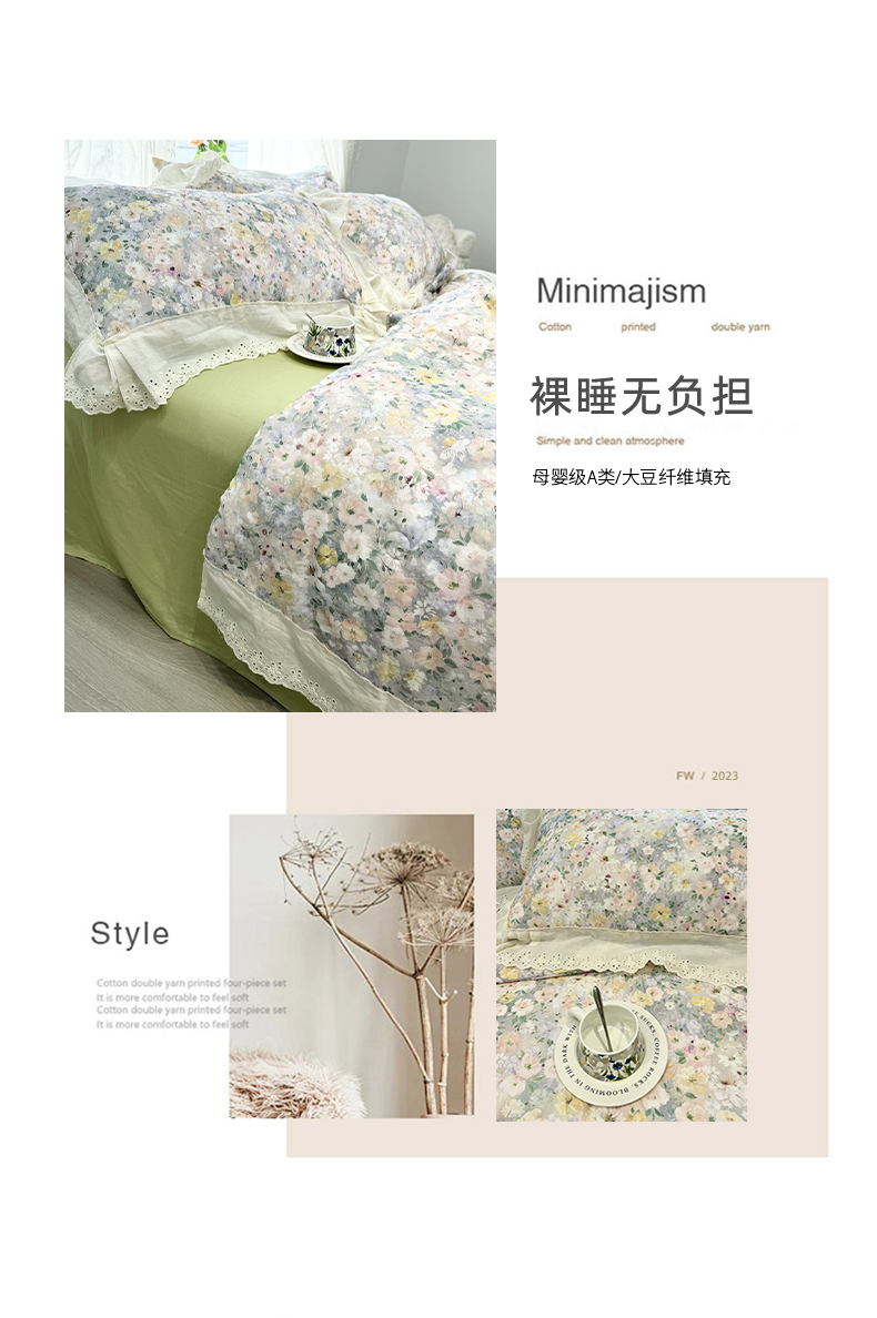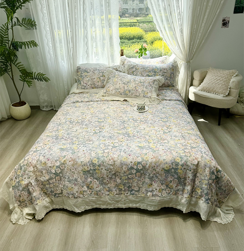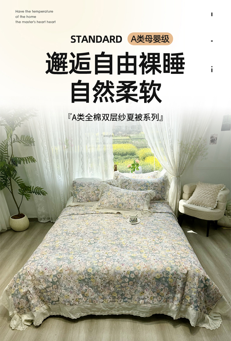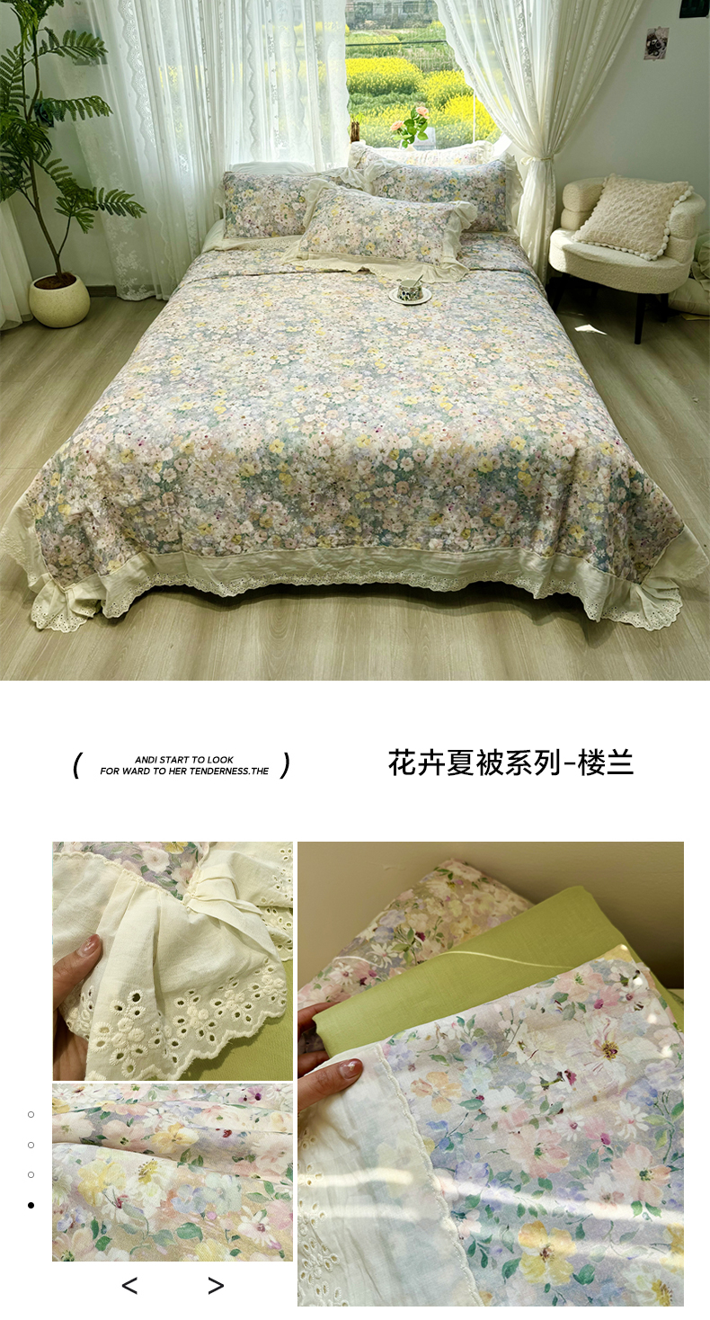 商品名称:眠博士2025新款双层纱印花花边夏被花卉系列 夏被-楼兰