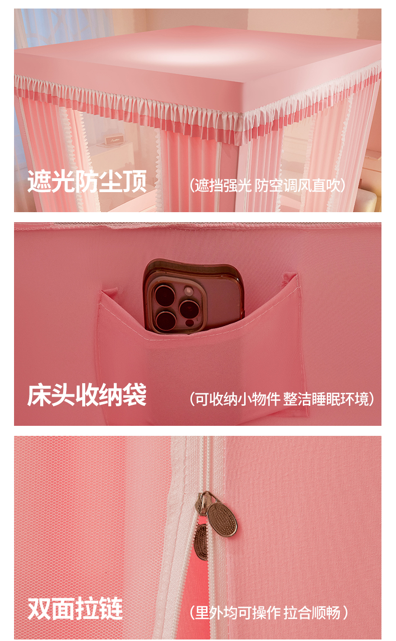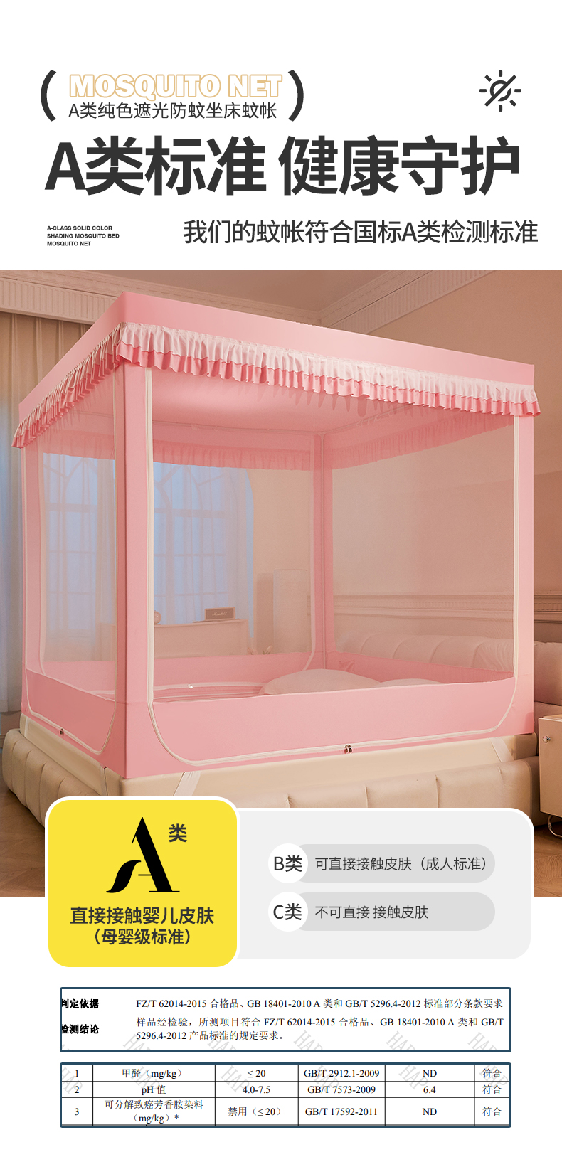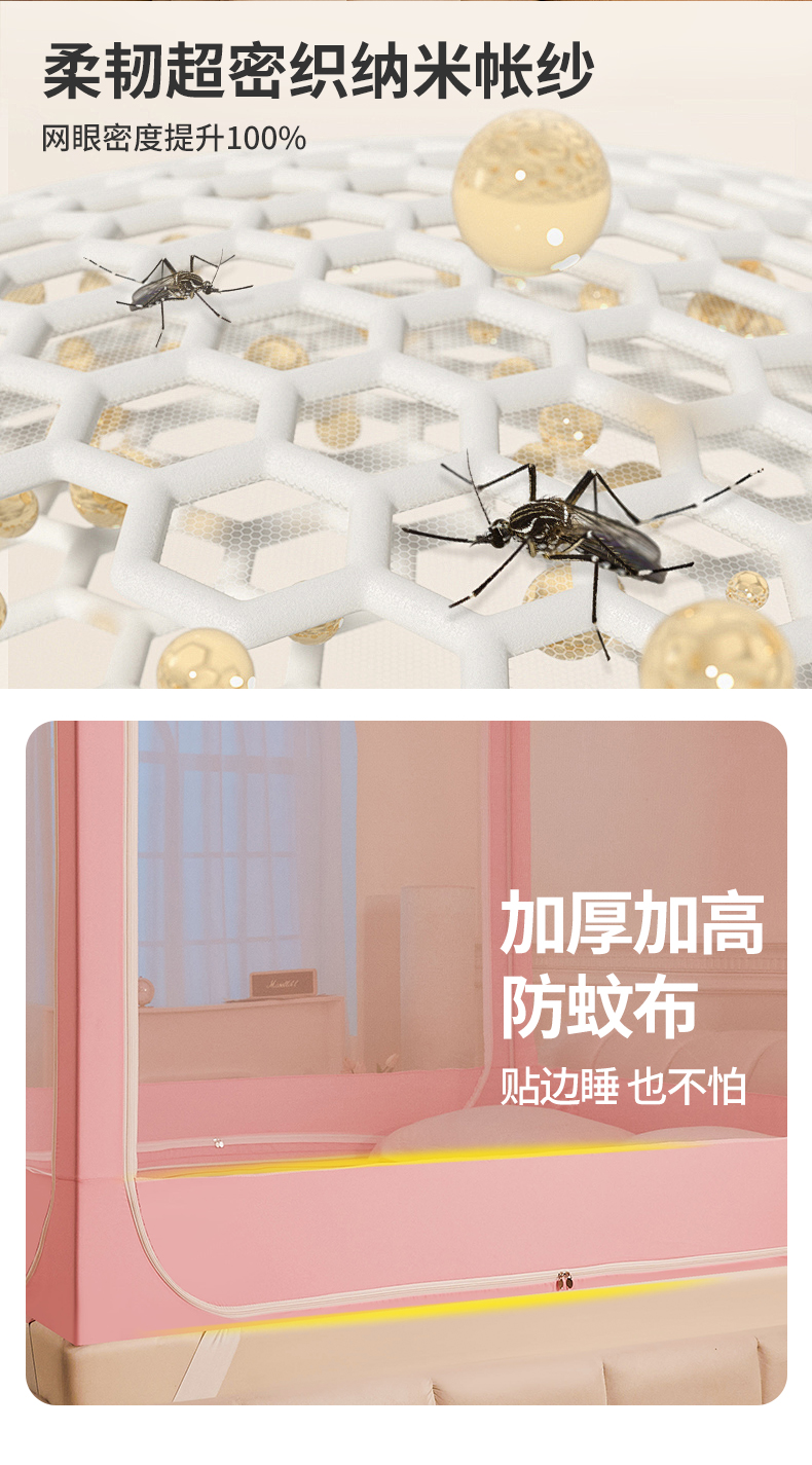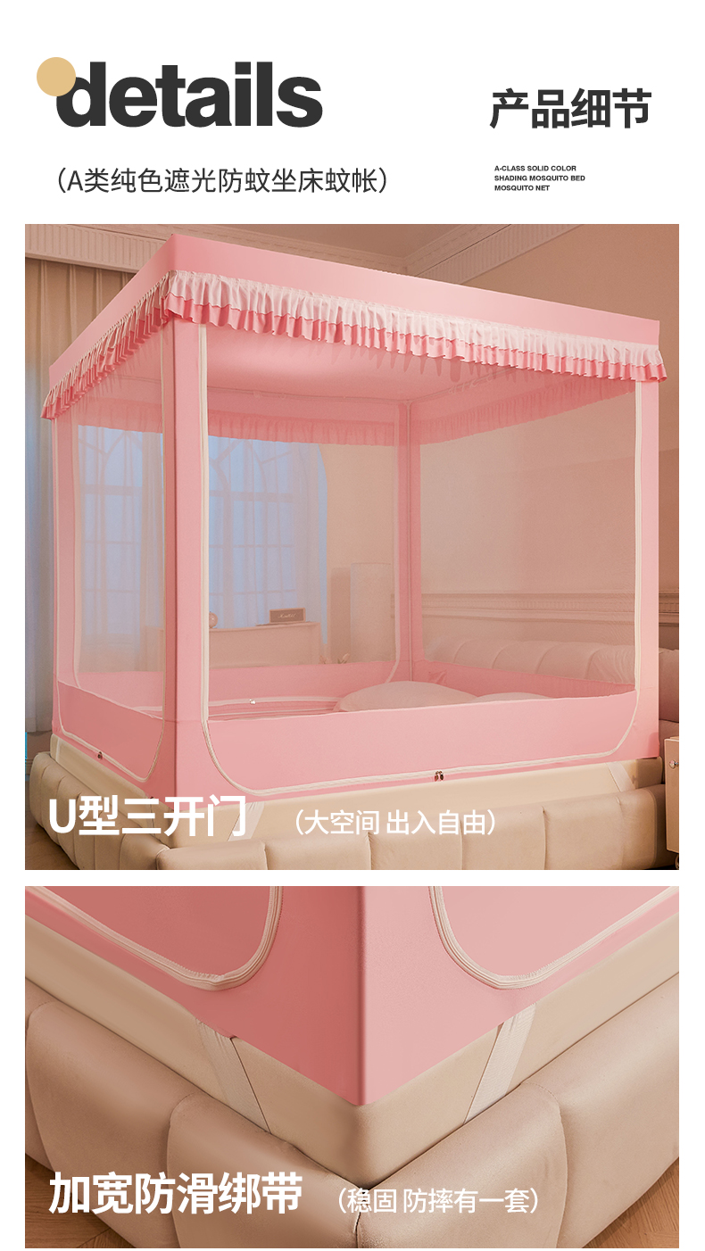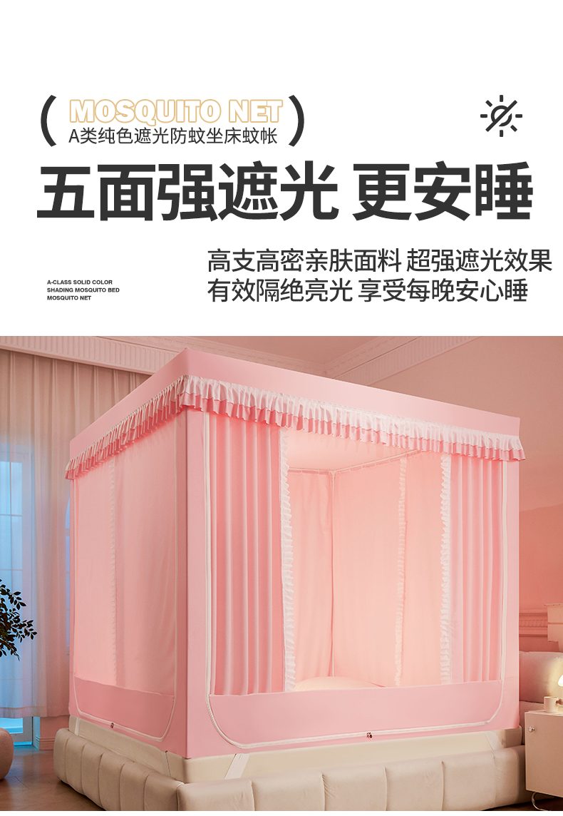 当前位置: 91家纺网 > 商品网购 > 床上用品 > 蚊帐 > 坐床式蚊帐 > 浪幔纱蚊帐 2025新款A类遮光防摔蚊帐坐床拉链全底回底纯色加厚支架 樱花粉【全底带帘款】