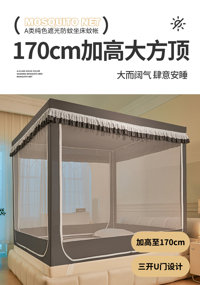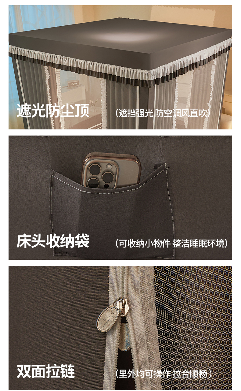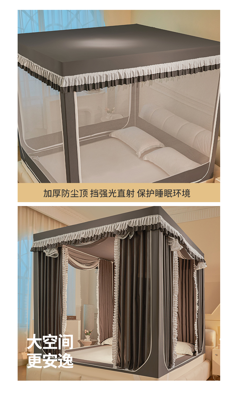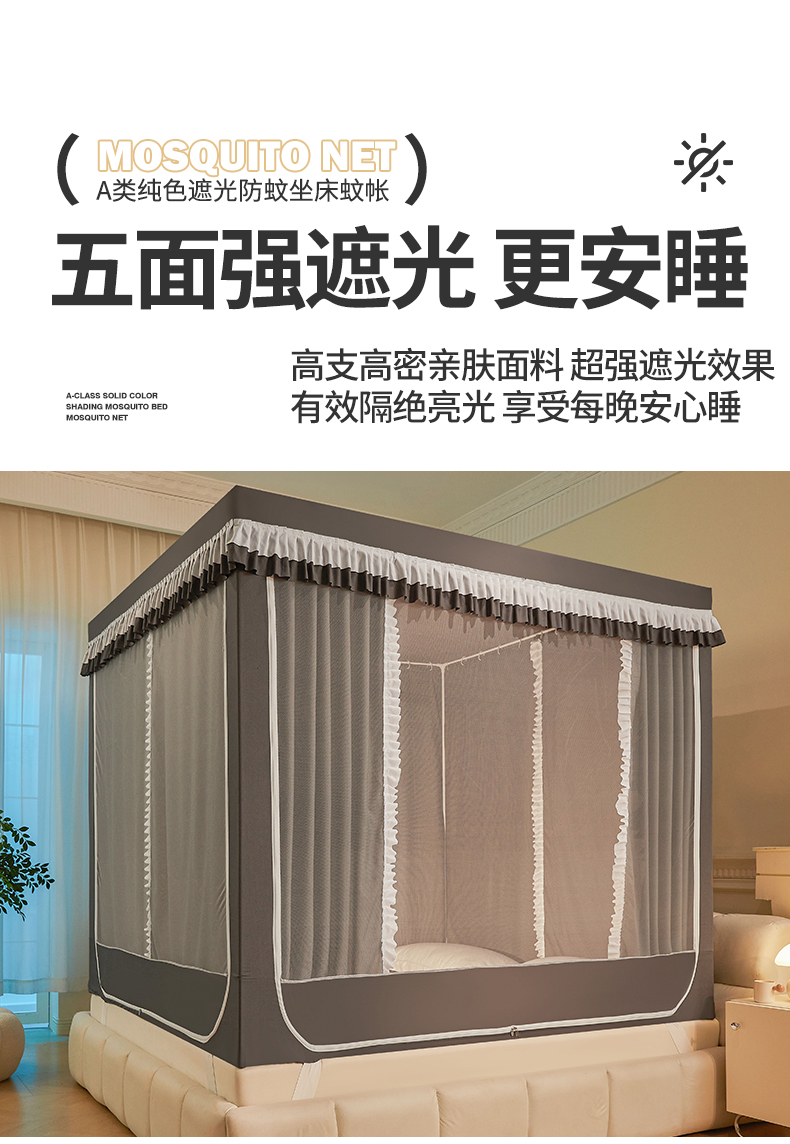 当前位置: 91家纺网 > 商品网购 > 床上用品 > 蚊帐 > 坐床式蚊帐 > 浪幔纱蚊帐 2025新款A类遮光防摔蚊帐坐床拉链全底回底纯色加厚支架 星辰灰【全底无帘款】