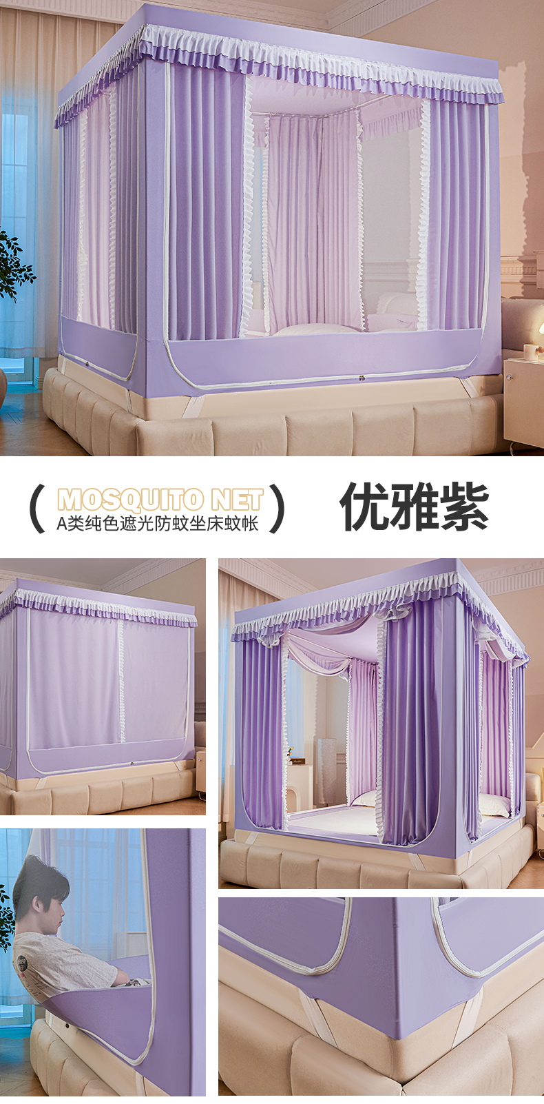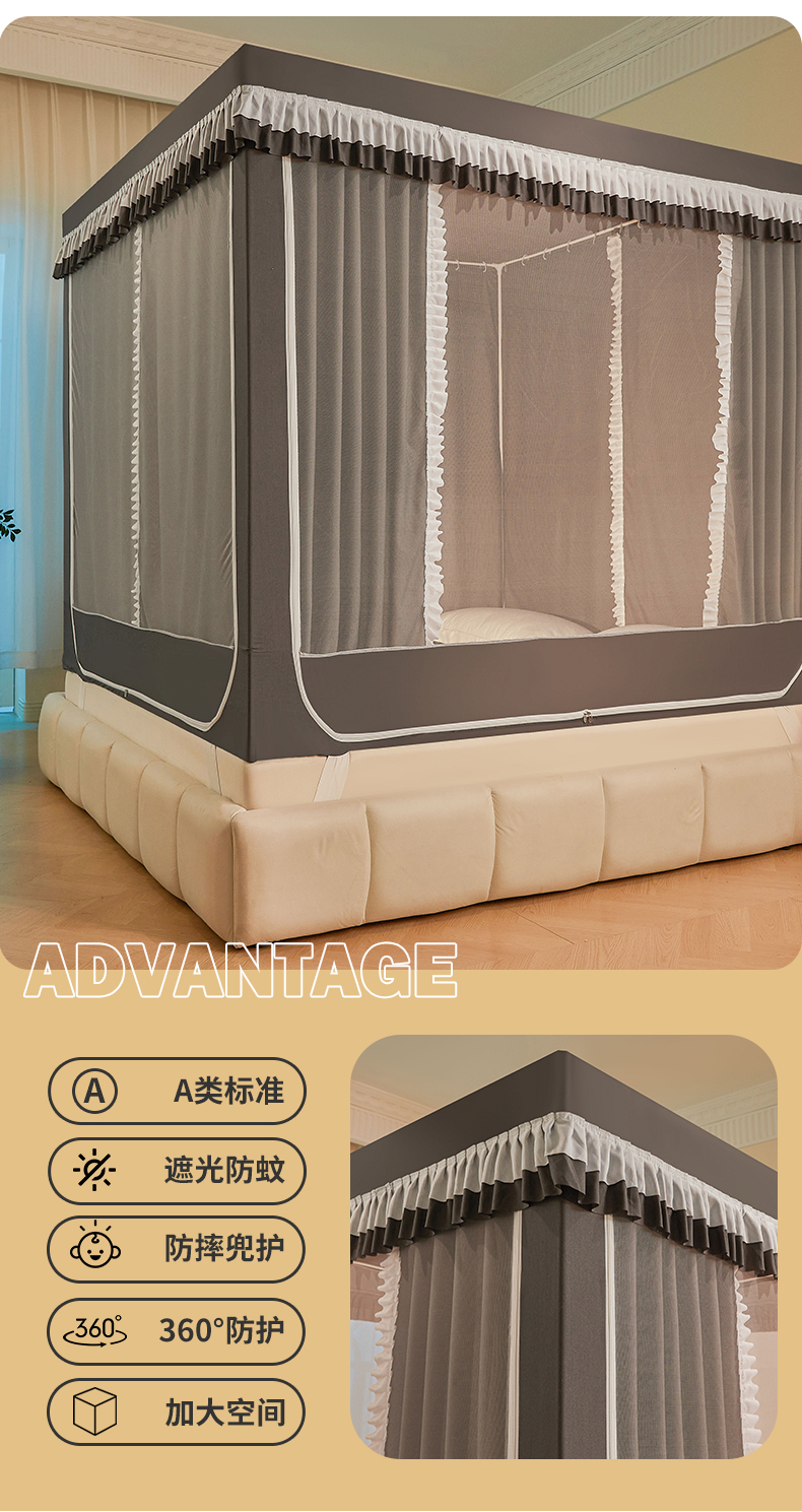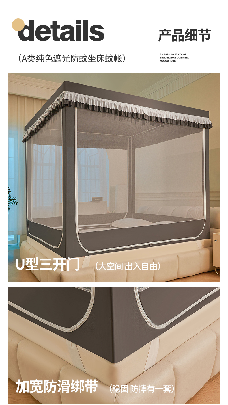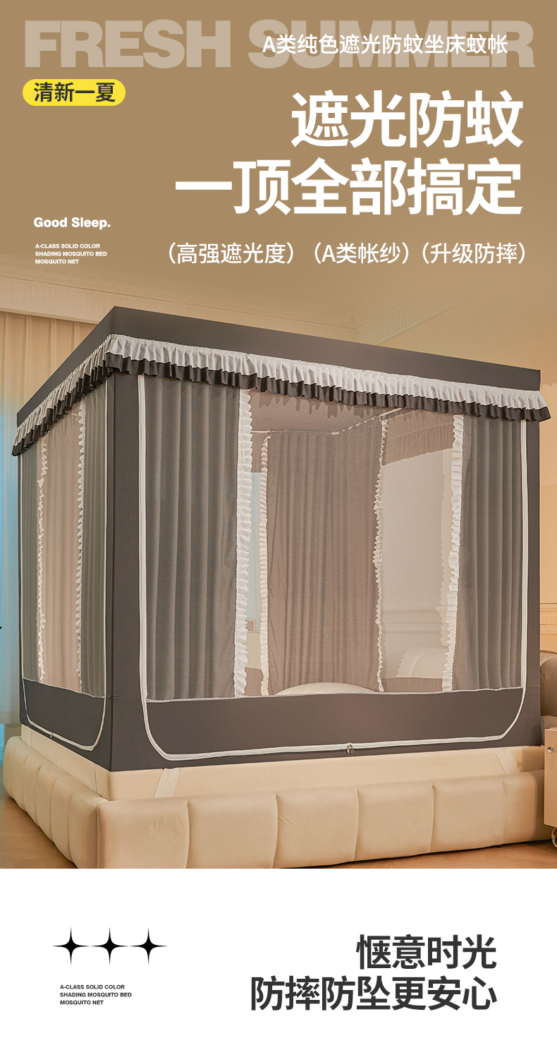 当前位置: 91家纺网 > 商品网购 > 床上用品 > 蚊帐 > 坐床式蚊帐 > 浪幔纱蚊帐 2025新款A类遮光防摔蚊帐坐床拉链全底回底纯色加厚支架 星辰灰【全底无帘款】