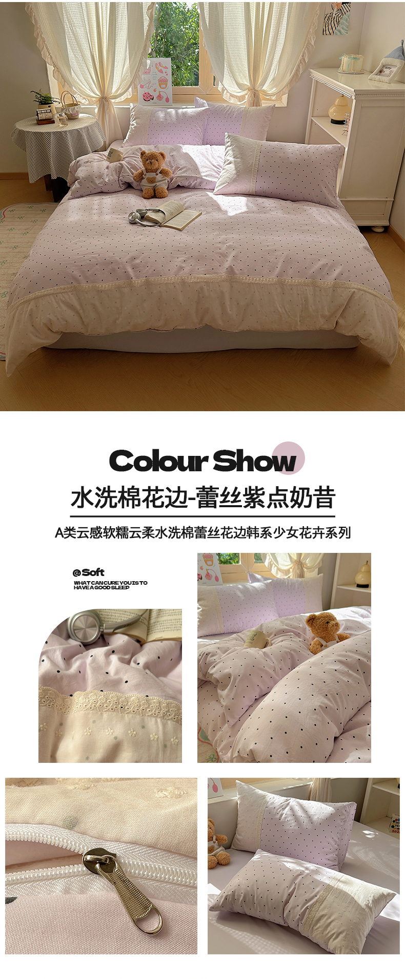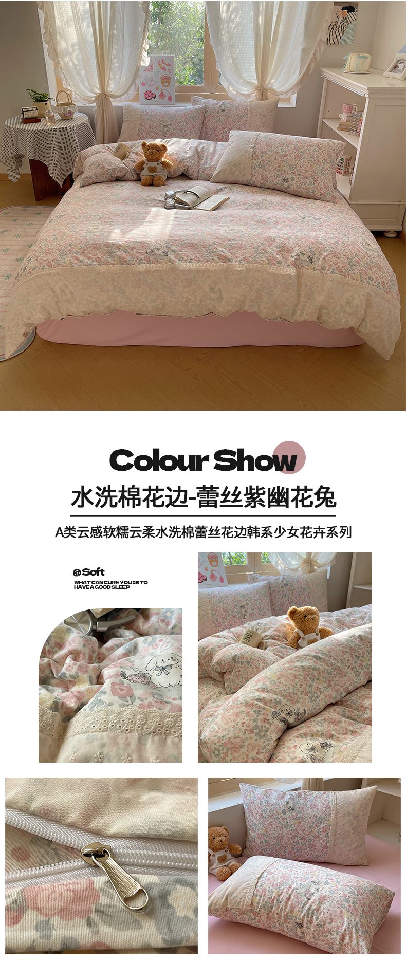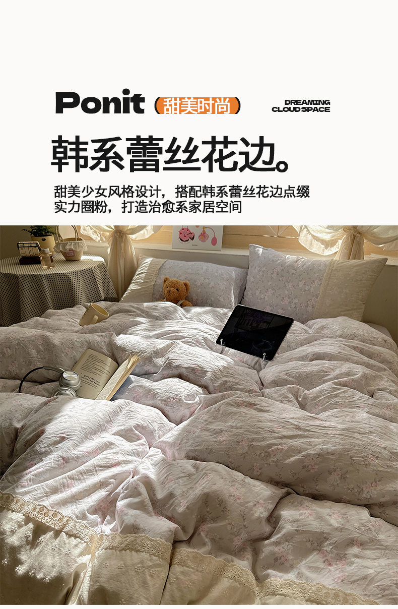 当前位置: 91家纺网 > 商品网购 > 床品套件 > 四件套 > 水洗棉四件套 > 桃心家居 2025新款云感水洗棉蕾丝花边四件套 水洗棉花边-蕾丝花境
