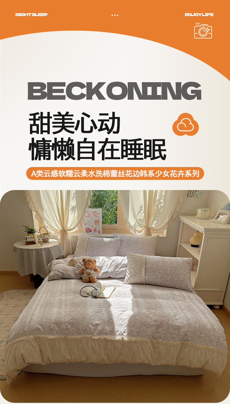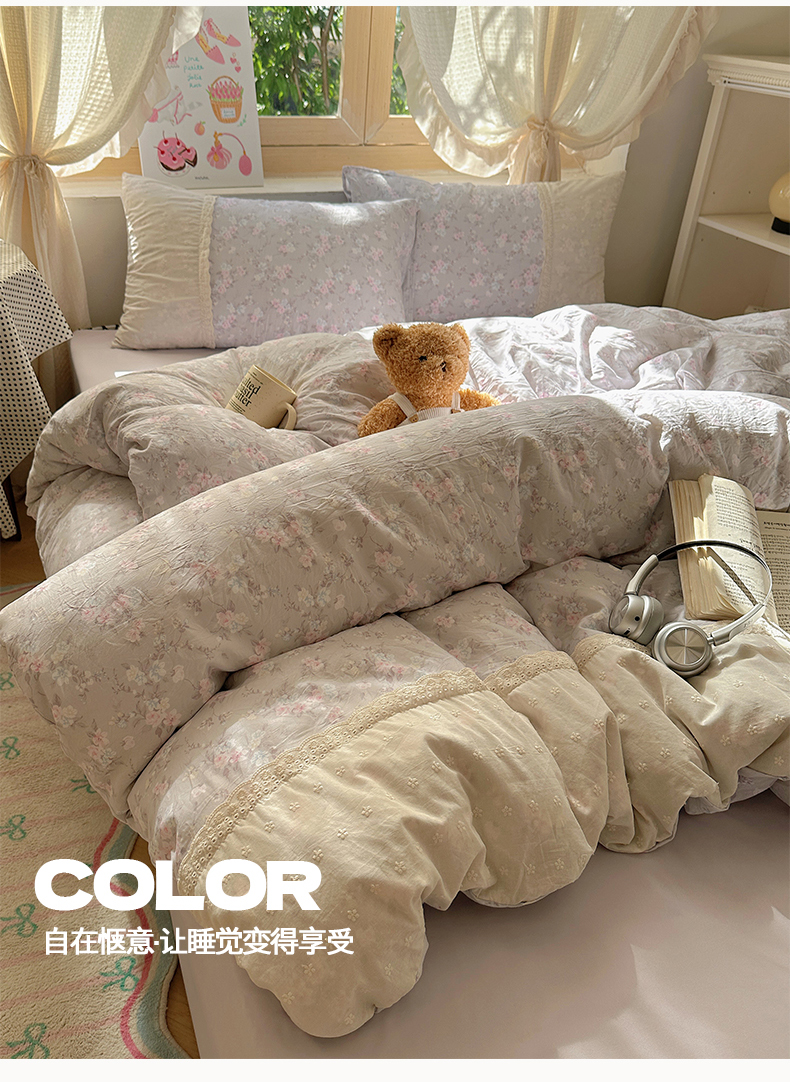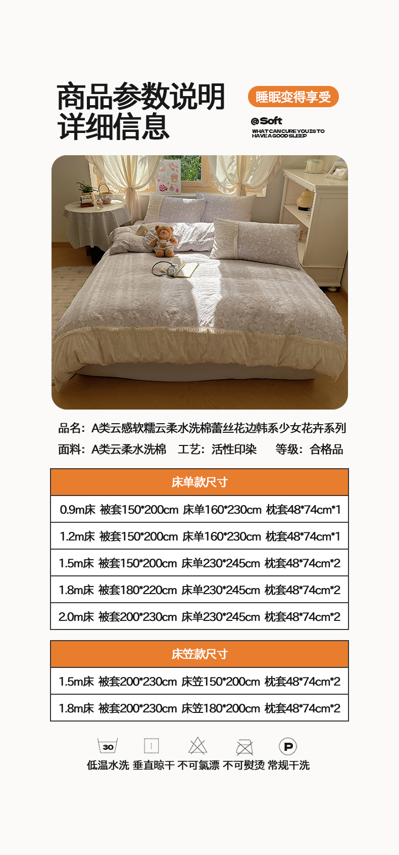 当前位置: 91家纺网 > 商品网购 > 床品套件 > 四件套 > 水洗棉四件套 > 桃心家居 2025新款云感水洗棉蕾丝花边四件套 水洗棉花边-蕾丝花境