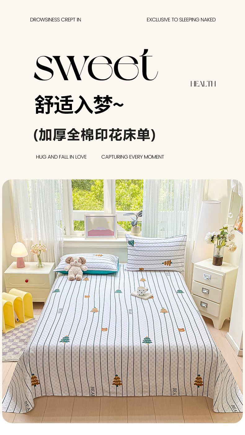 黑马家居 2025新款全棉纯棉印花单床单床单单件 小熊森林