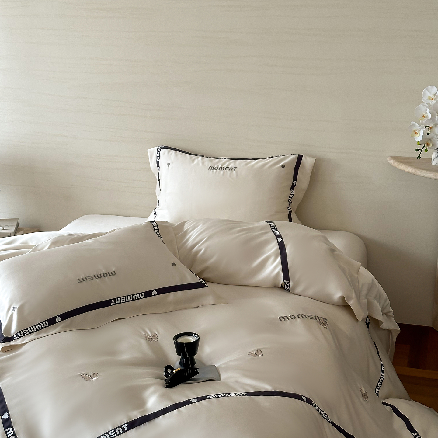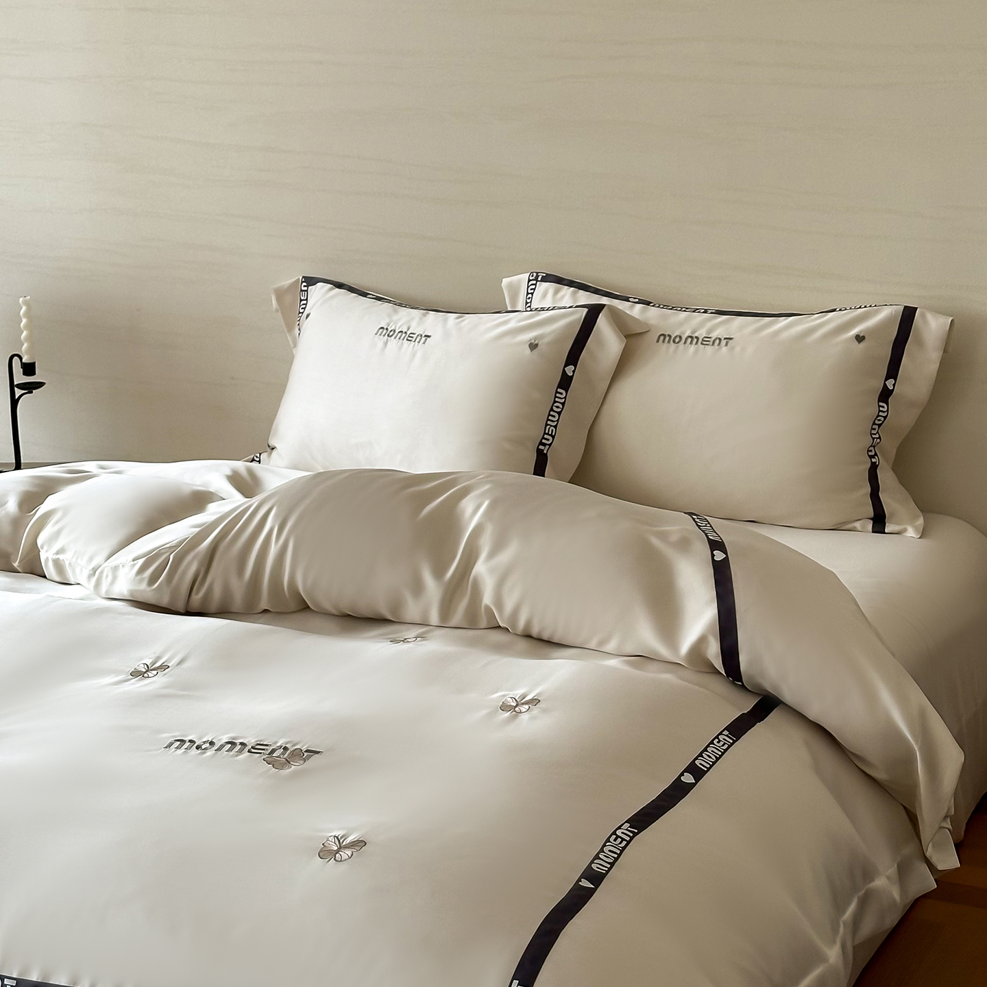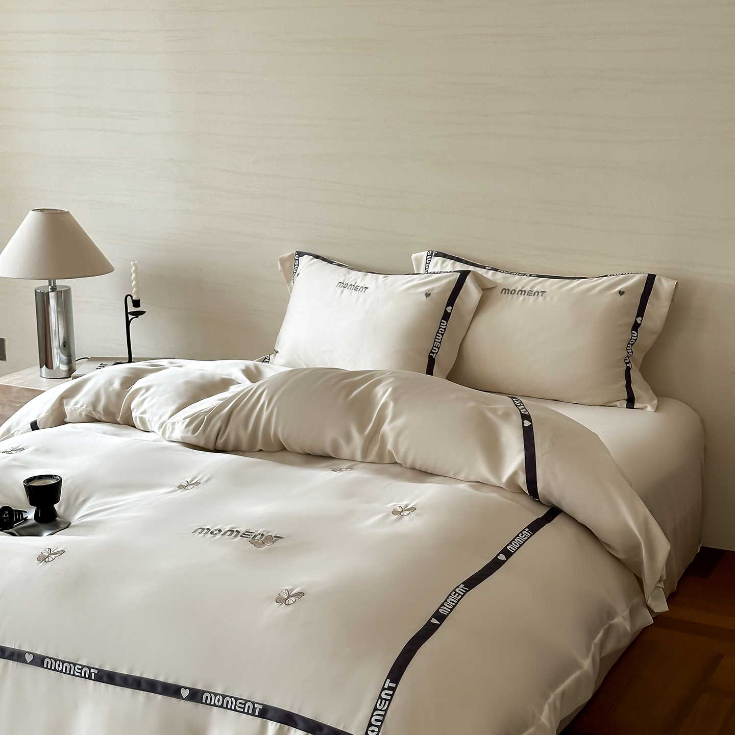 禾时 2025新款60S奥地利进口兰精天丝绣花黑边款四件套-蓓莉 蓓莉-白