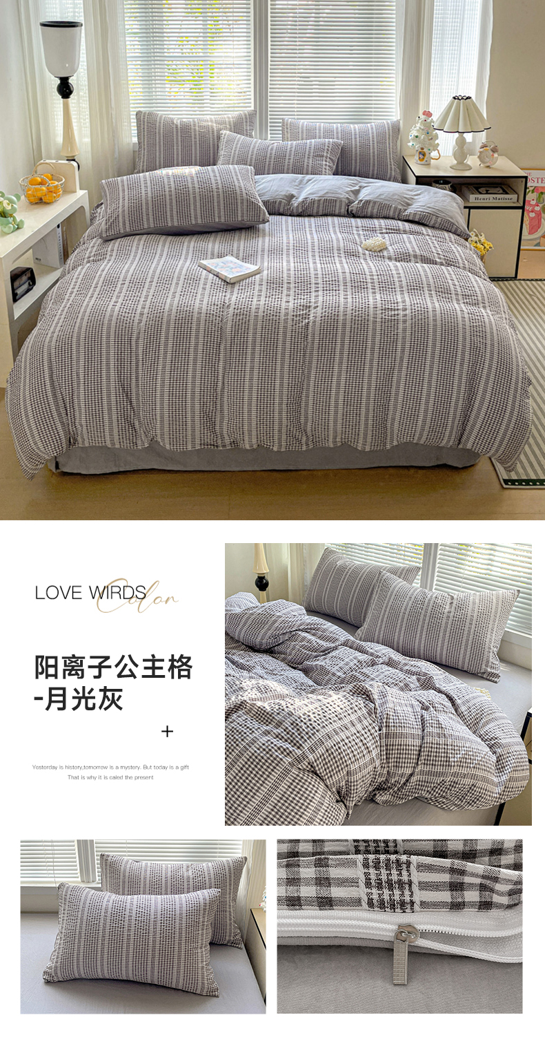 当前位置: 91家纺网 > 商品网购 > 床品套件 > 四件套 > 卡普家居 2025新款A类阳离子公主格四件套 阳离子公主格-月光灰