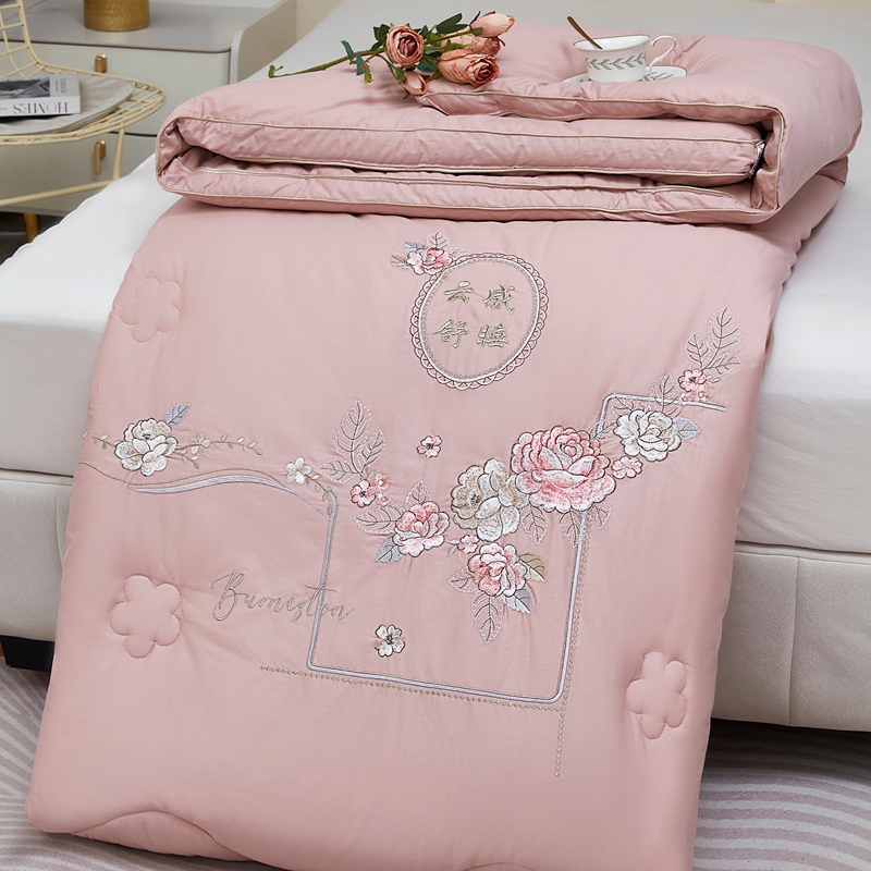 商品名称:仲旺居家纺 2025新款60s婚庆被绣花冬被全棉冬被立体边被子被芯四季被春秋被 豆沙