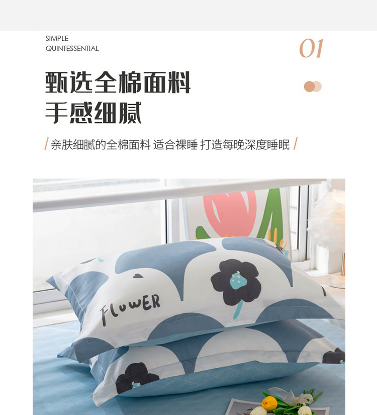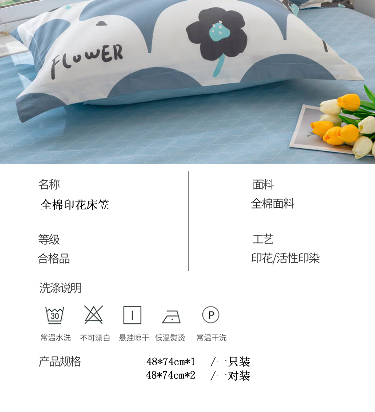 商品名称:贝兰仙奴 2025春夏新款全棉纯棉12868印花单枕套 枕套单件 春季花语蓝