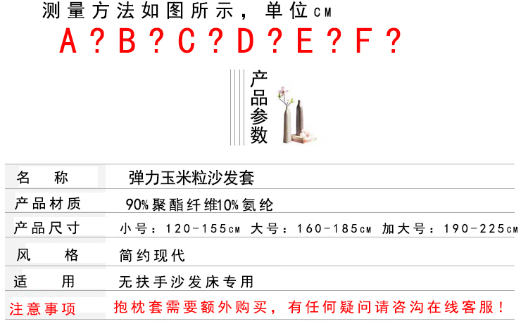 商品名称:弹力加厚玉米绒沙发床套 玉米粒绒纯色无扶手双人沙发套