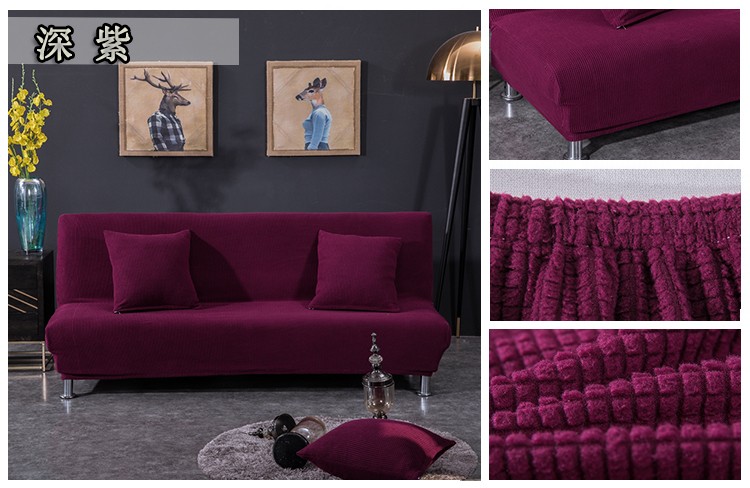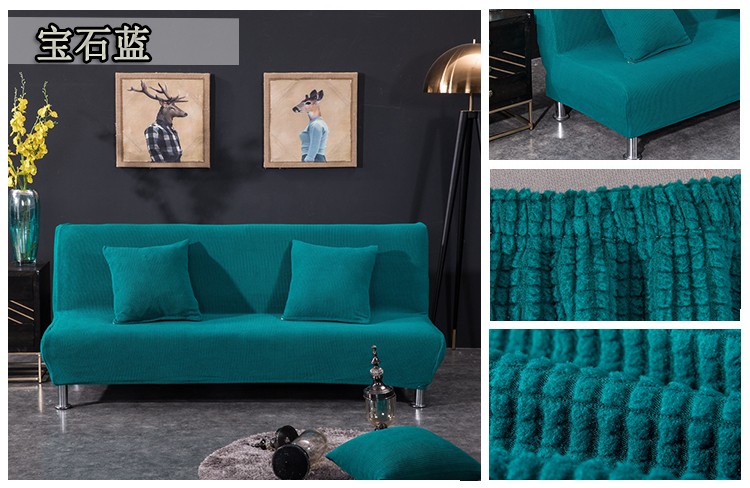 弹力加厚玉米绒沙发床套 玉米粒绒纯色无扶手双人沙发套