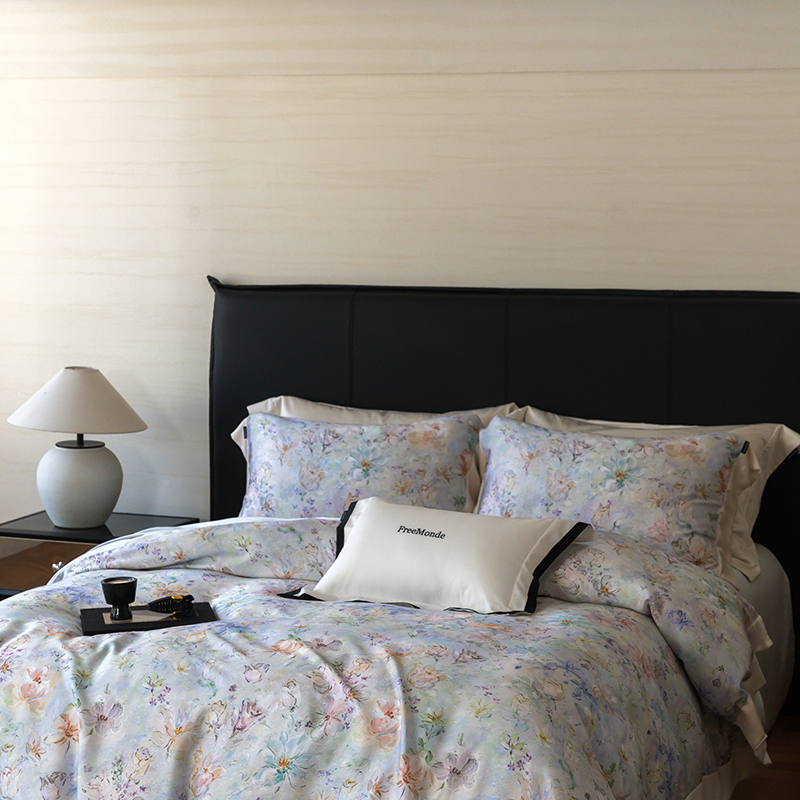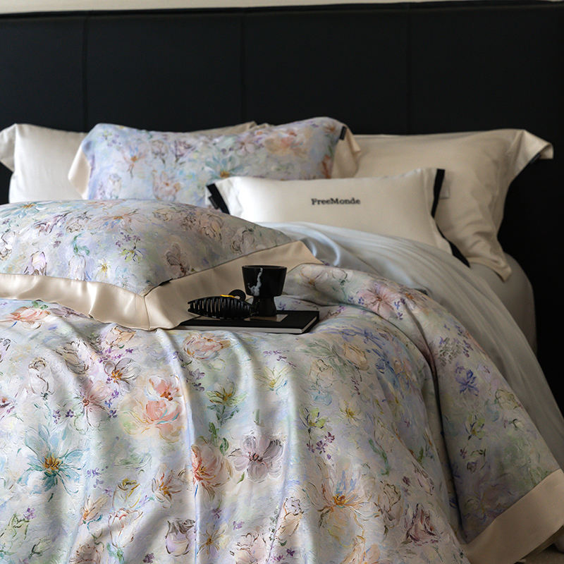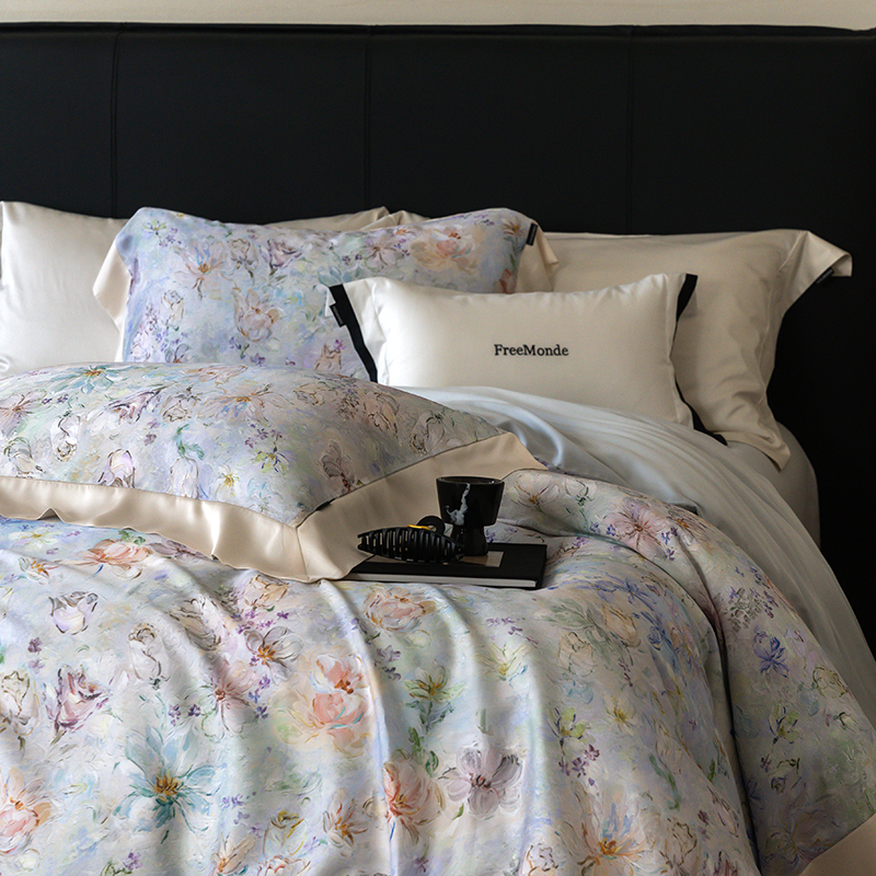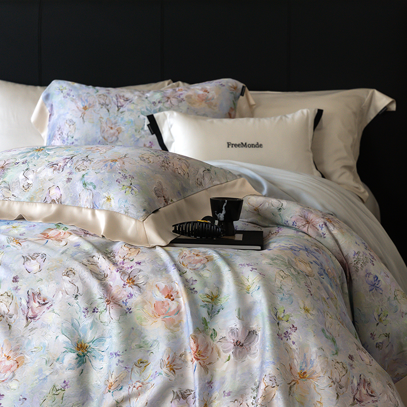 蕾诺家纺 2025新款60支进口奥地利兰精天丝数码印花四件套 微芒-星蓝