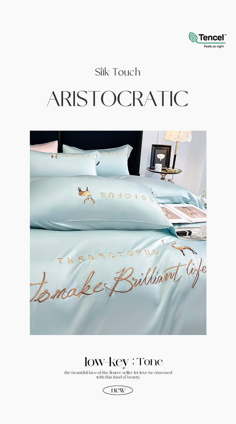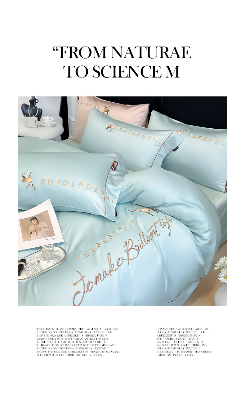 2025新款夏季爆款A类兰精天丝四件套真丝重工刺绣丝滑裸睡床单床笠轻奢风纯色简约床上用品 妮鹿-薄荷绿