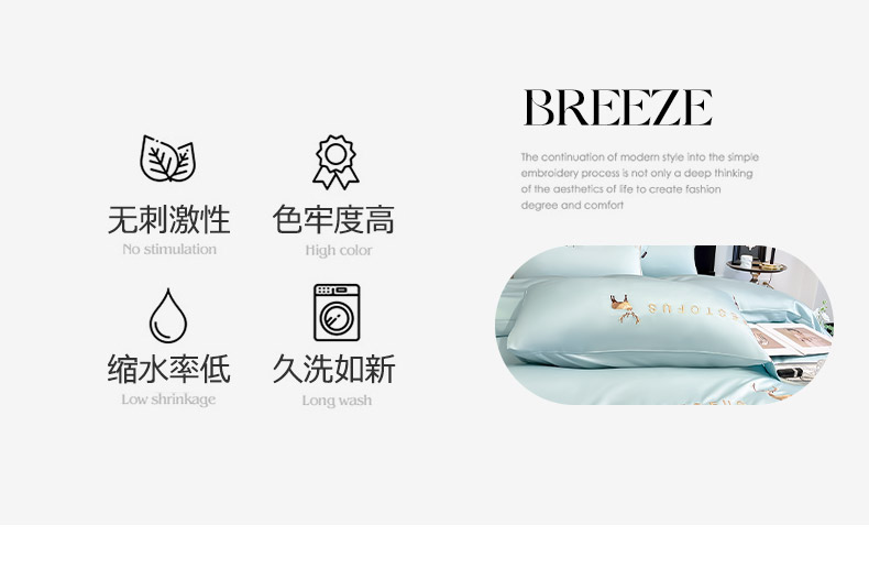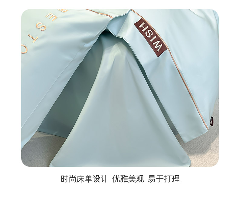 商品名称:2025新款夏季爆款A类兰精天丝四件套真丝重工刺绣丝滑裸睡床单床笠轻奢风纯色简约床上用品 妮鹿-薄荷绿