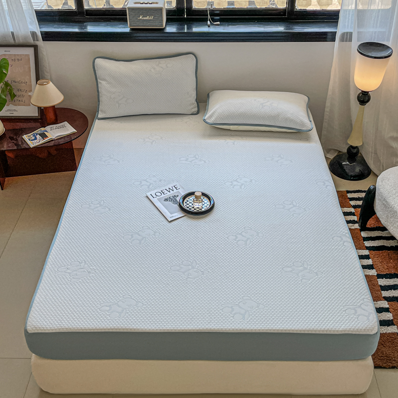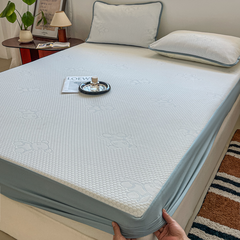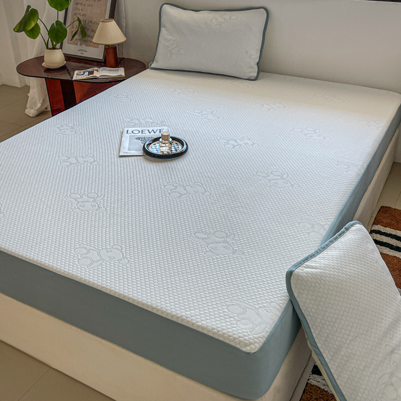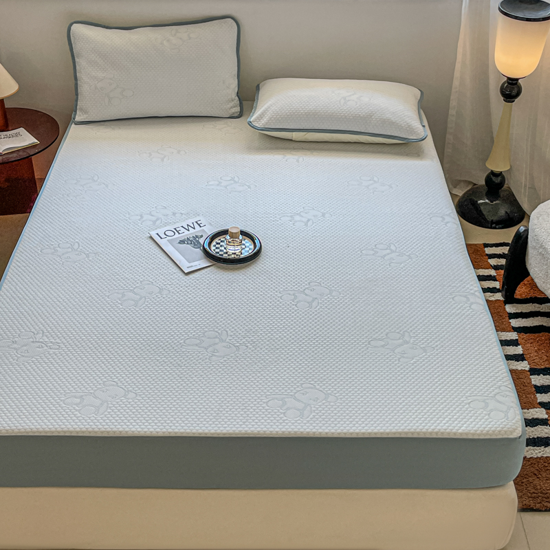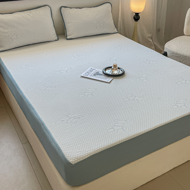 花满路 2025新款提花凉豆豆床笠款床席三件套 暴力熊蓝