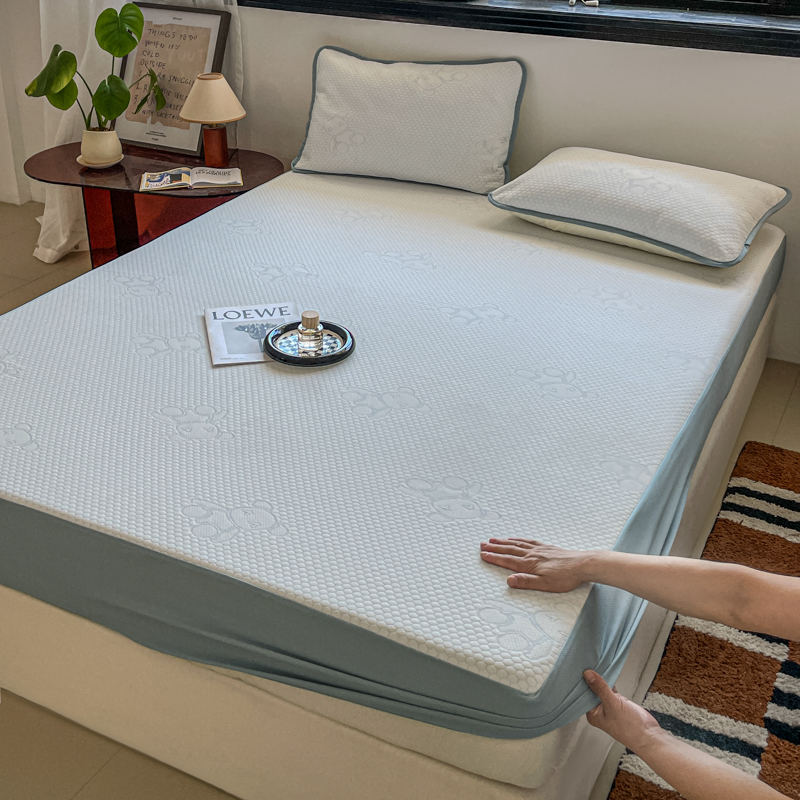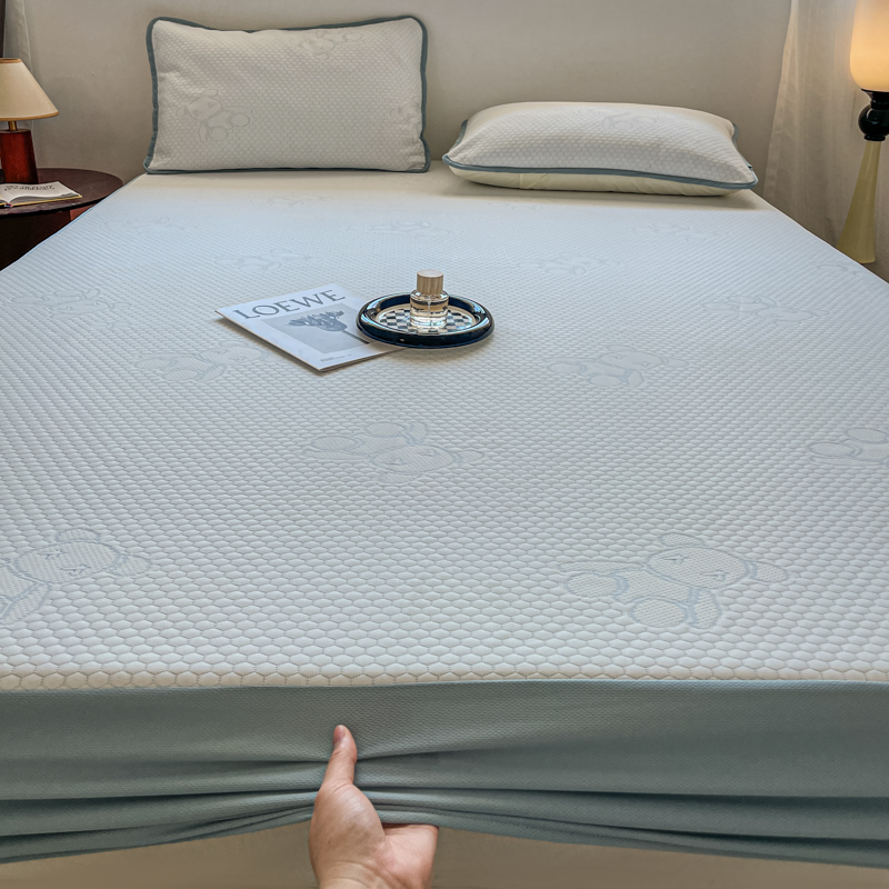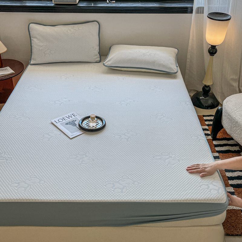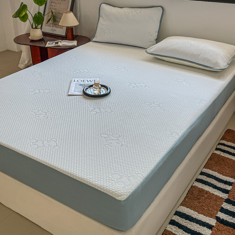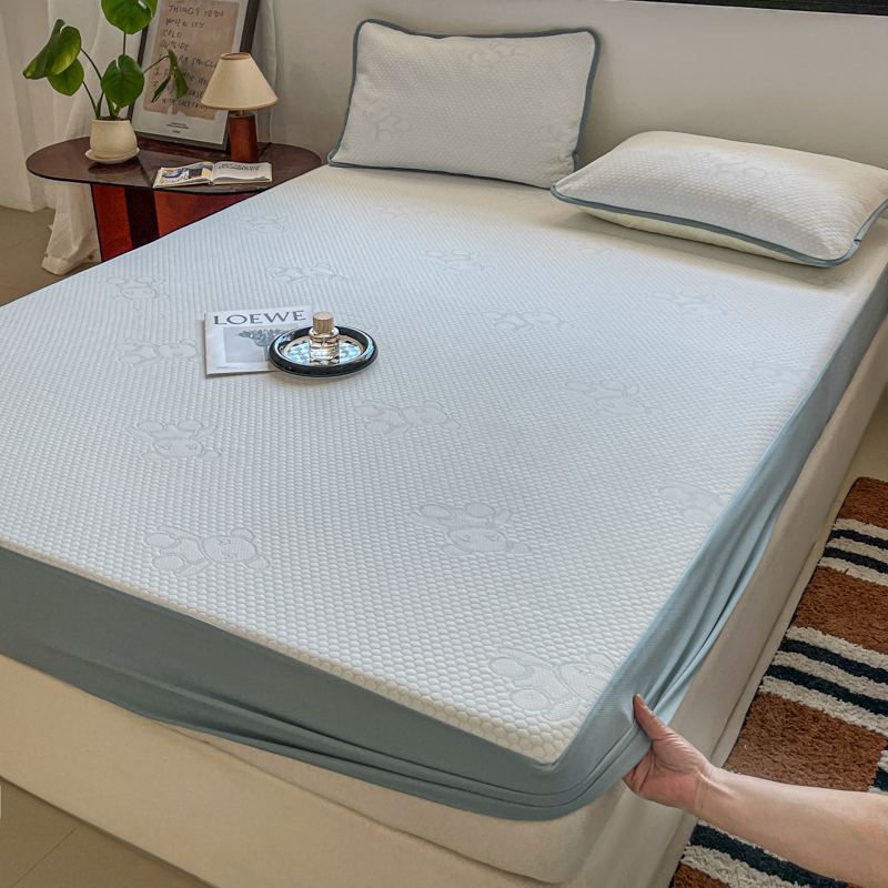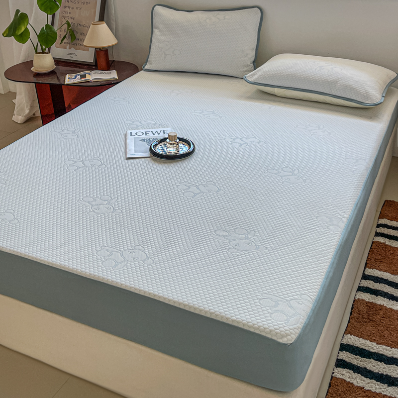 花满路 2025新款提花凉豆豆床笠款床席三件套 暴力熊蓝