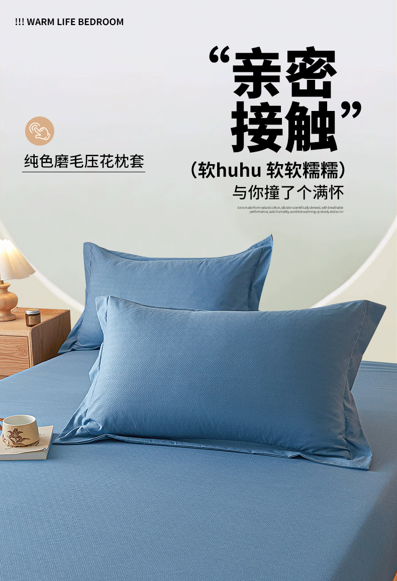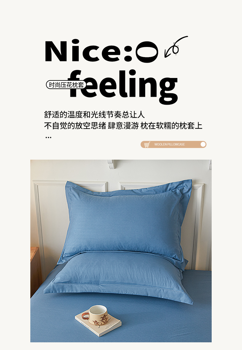 露梦家纺 2025新款纯色磨毛压花简约枕套 蓝色