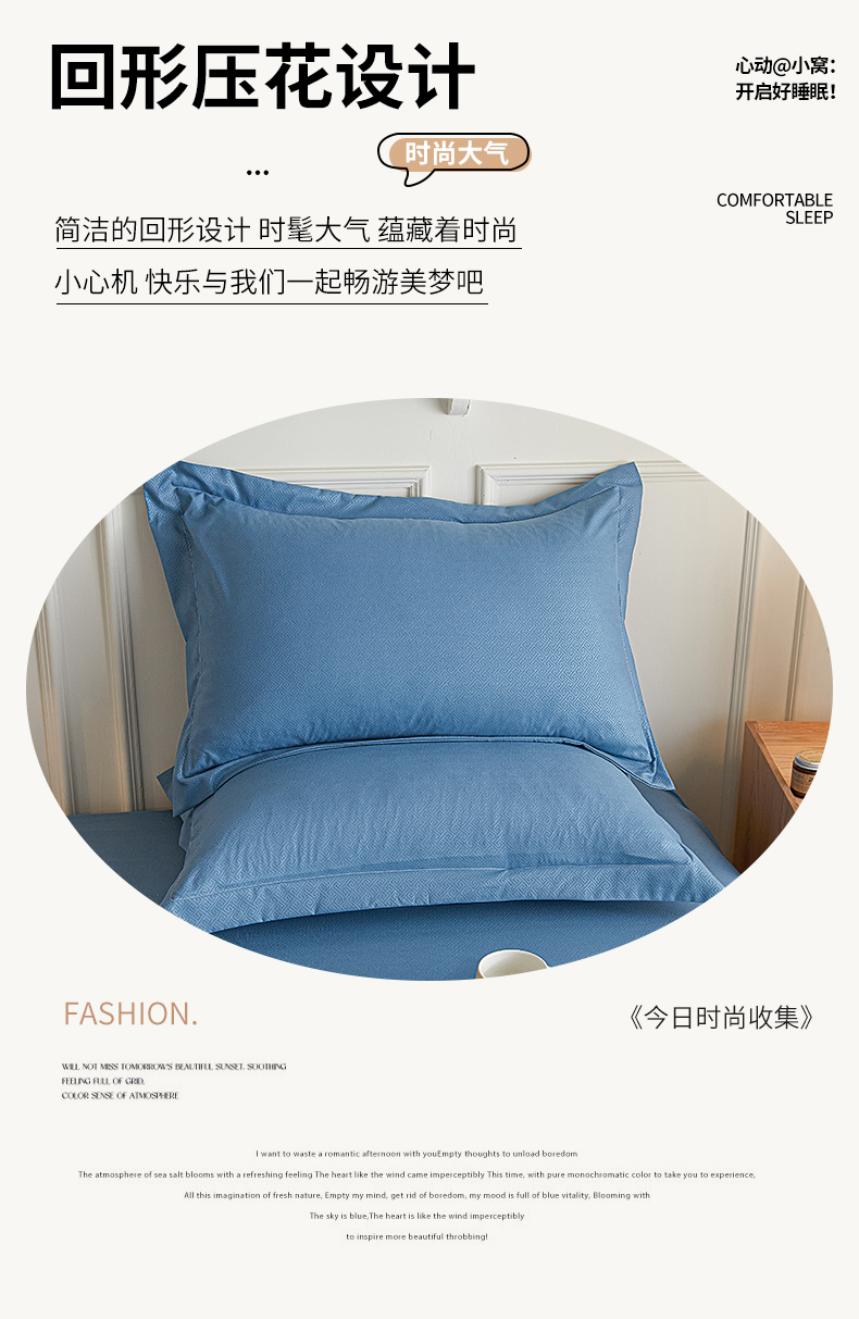 商品名称:露梦家纺 2025新款纯色磨毛压花简约枕套 蓝色